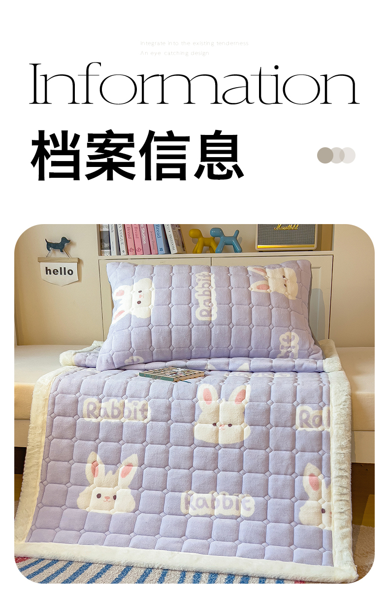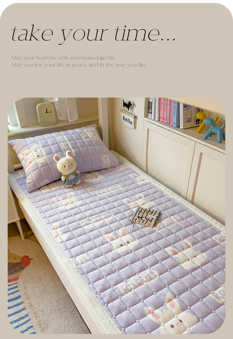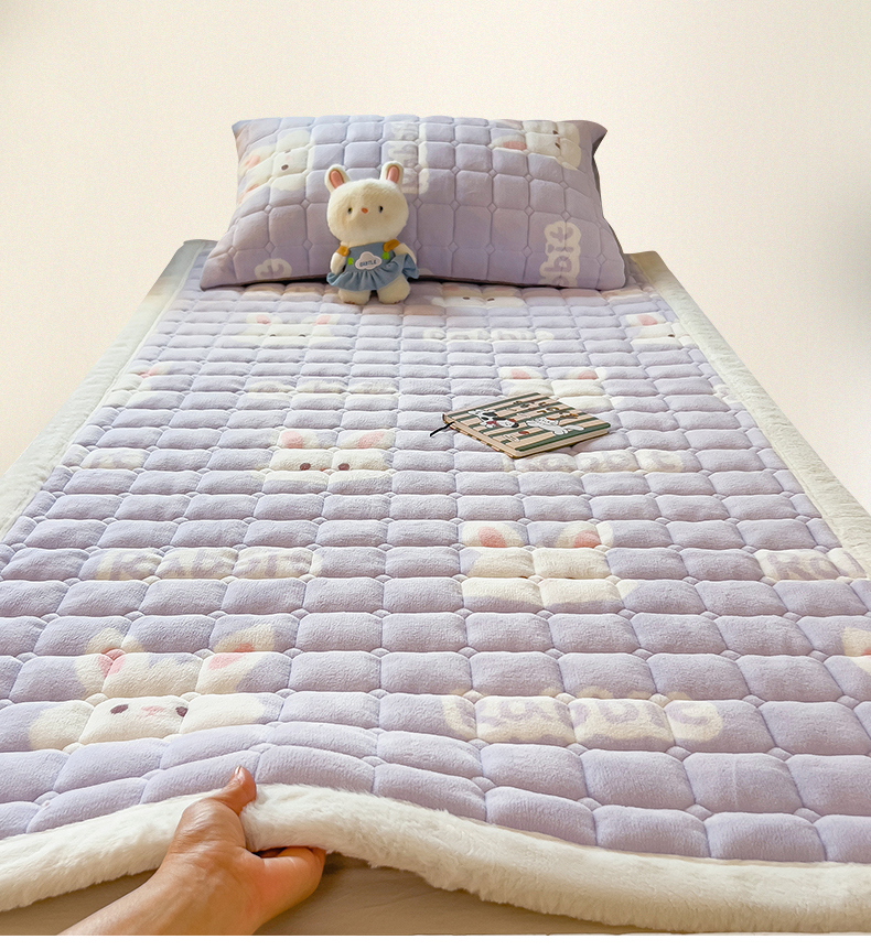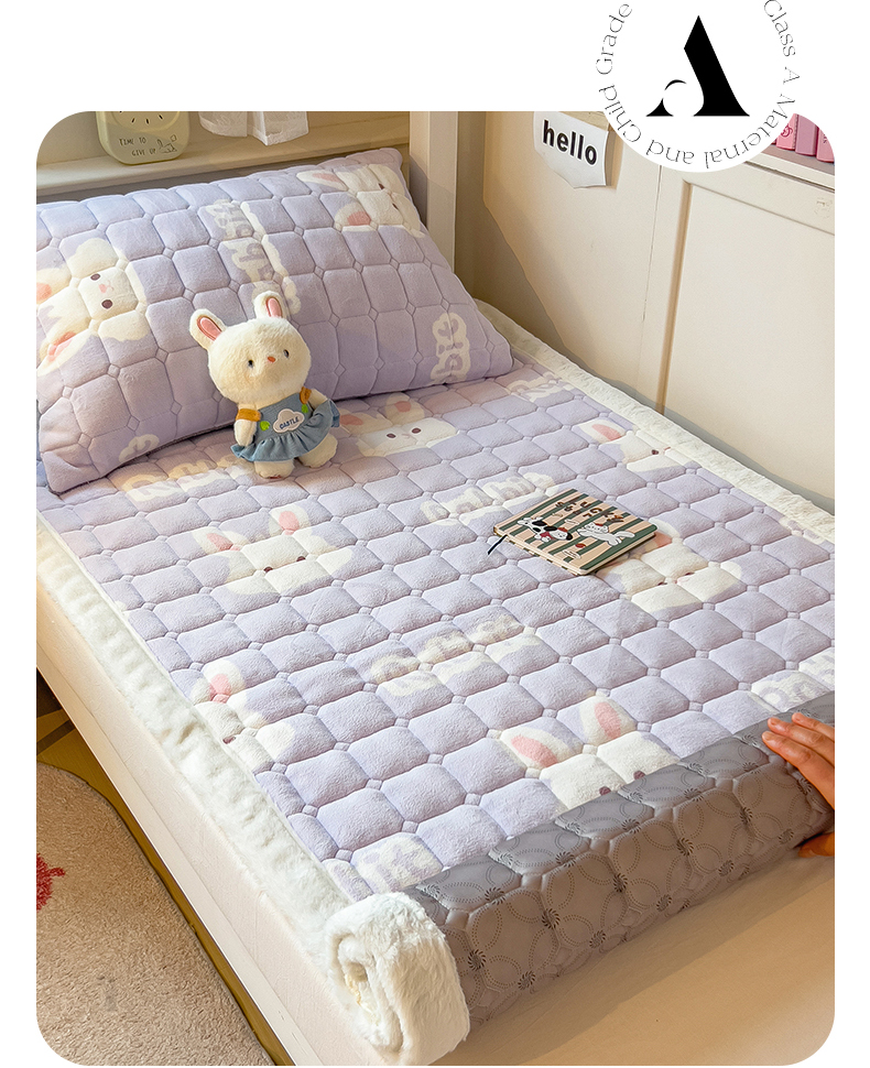 商品名称:丝幔家纺 2025新款牛奶绒印花床护垫学生款 大白兔紫