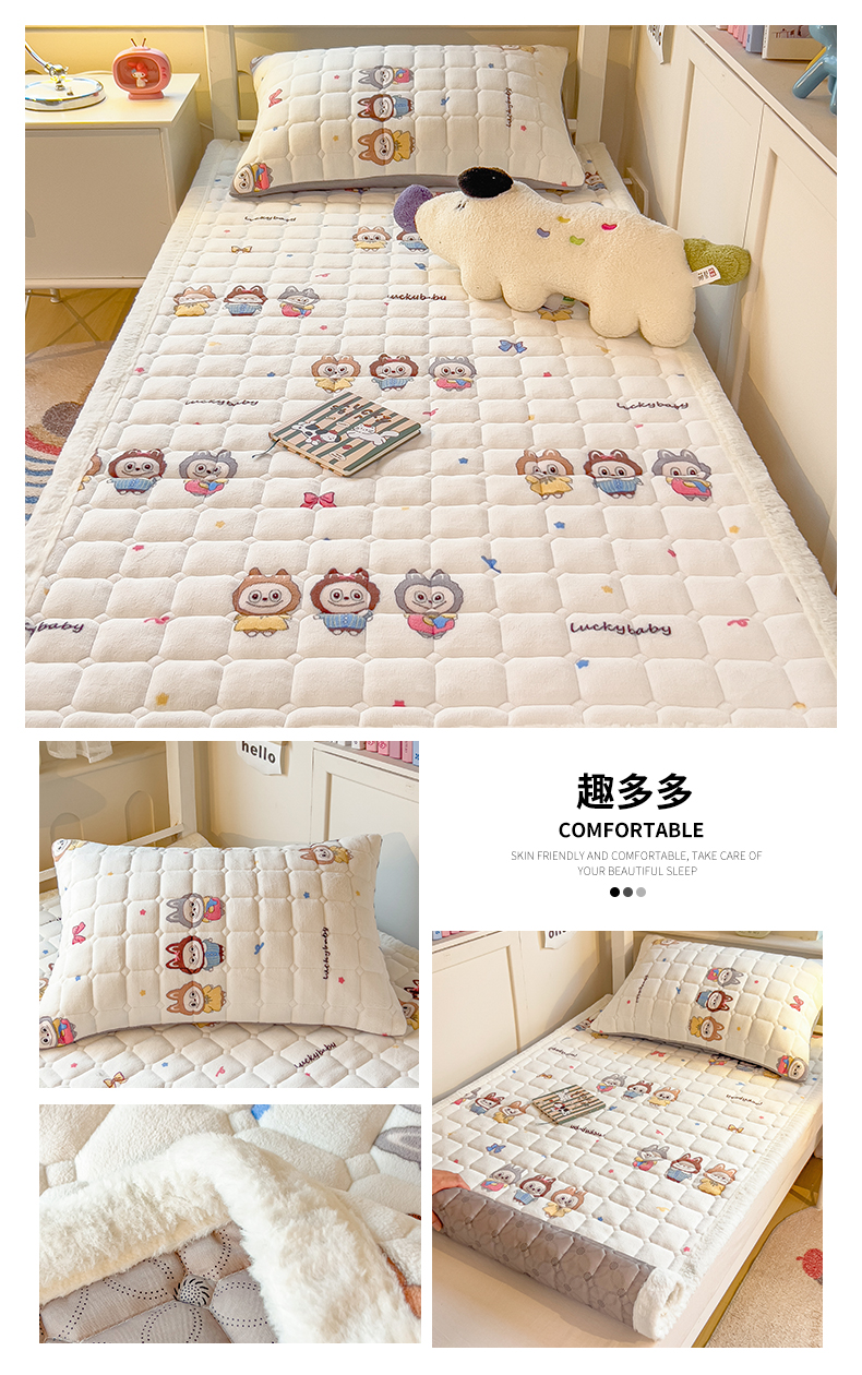 (总)丝幔家纺 2025新款牛奶绒印花床护垫学生款,大白兔紫,芭比蝴蝶结,大橘大利,花园小熊,欢乐下午茶,腊肠狗,萌宠小狗,秘密花园,趣多多,甜心粉猫