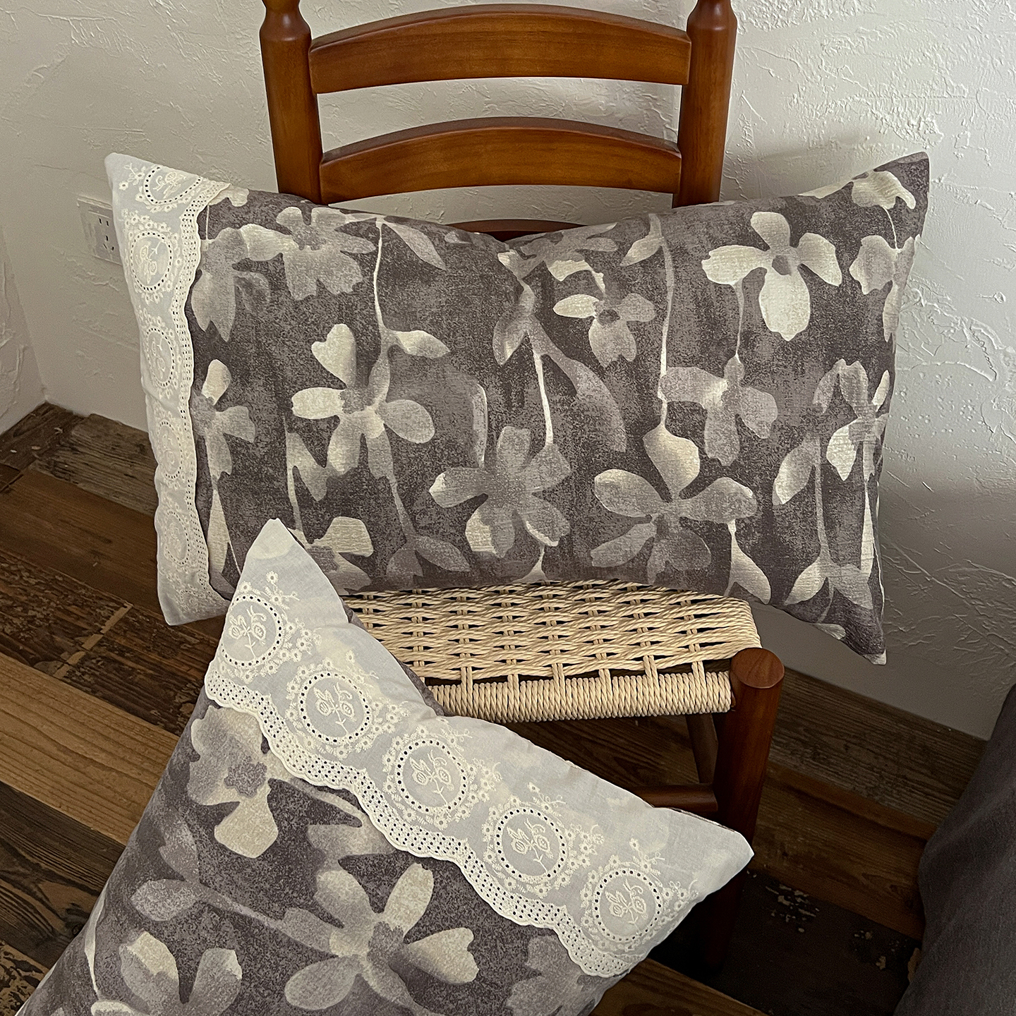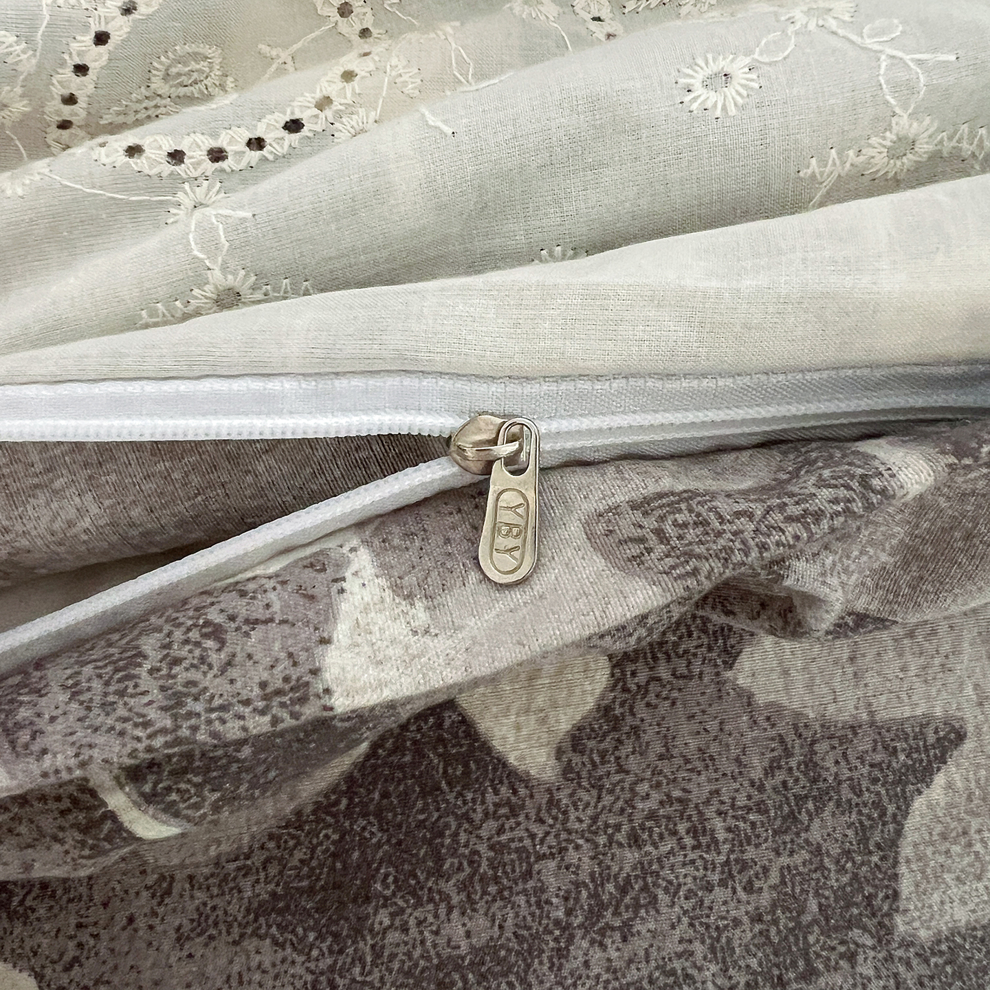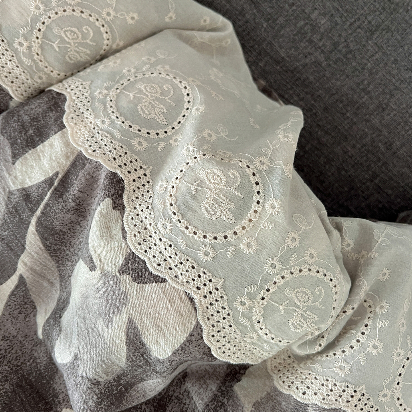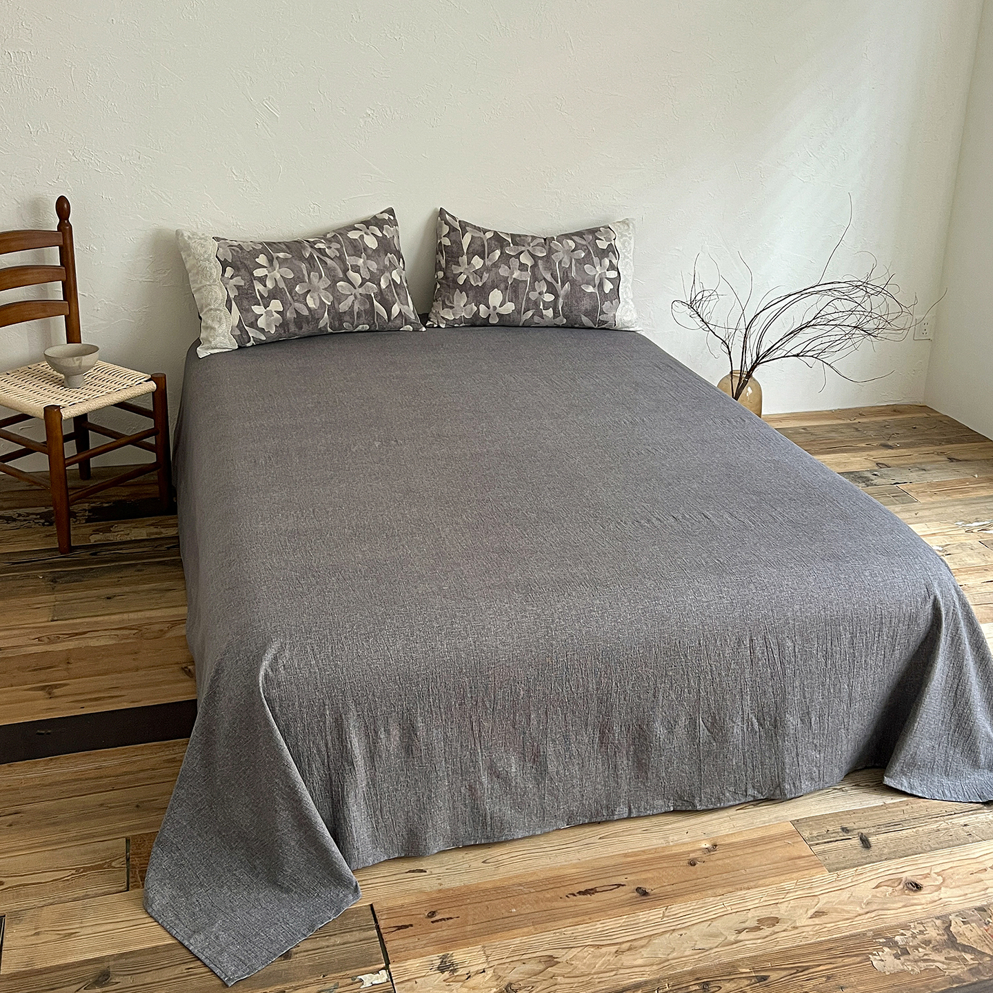 一比一家纺 2025秋冬新品高克重原麻复古全棉花边棉麻侘寂风原麻四件套 (控价99元)花影灰
