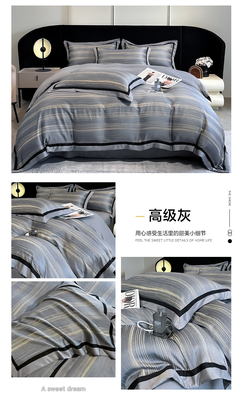 博纳家纺 2025新款双色宽边高级简奢款四件套-维多利亚 高级灰