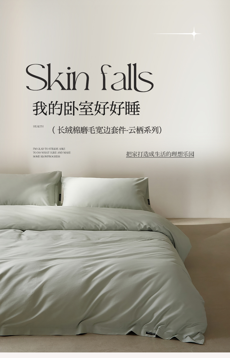 当前位置: 91家纺网 > 商品网购 > 床品套件 > 四件套 > 全棉活性四件套 > EH家居 2025新款100S长绒棉小宽边磨毛四件套--云栖系列 晴空蓝