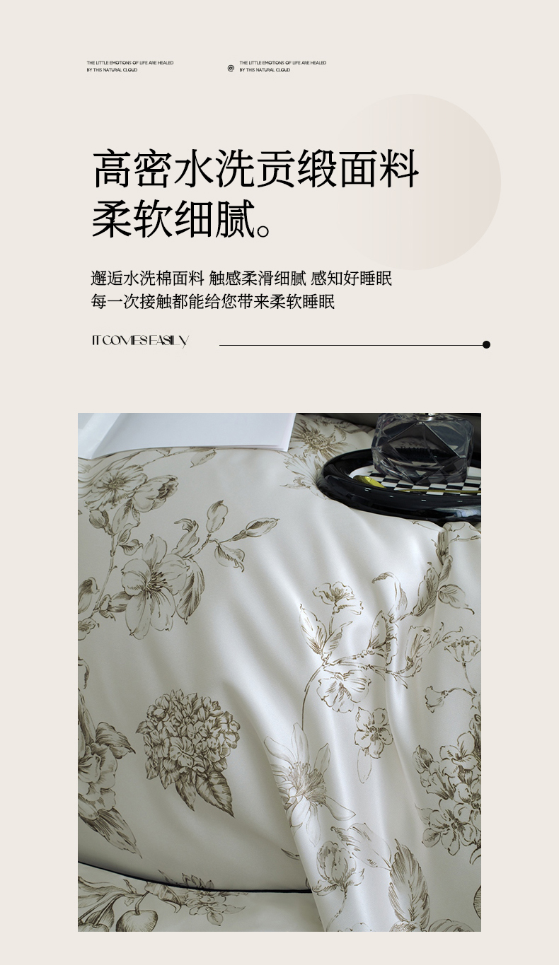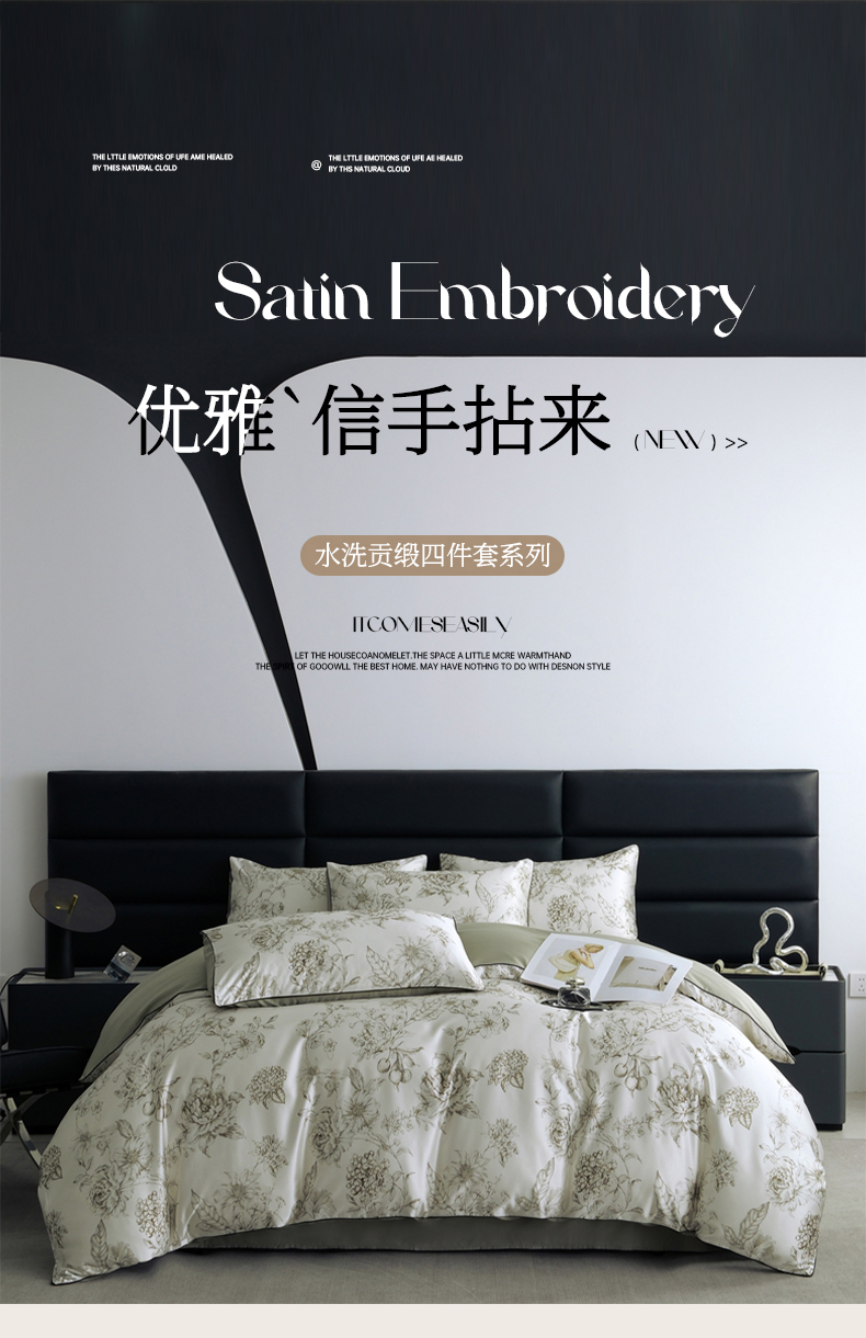 商品名称:(总)麦空家居 2025春夏水洗真丝贡缎埋绳四件套-繁花系列