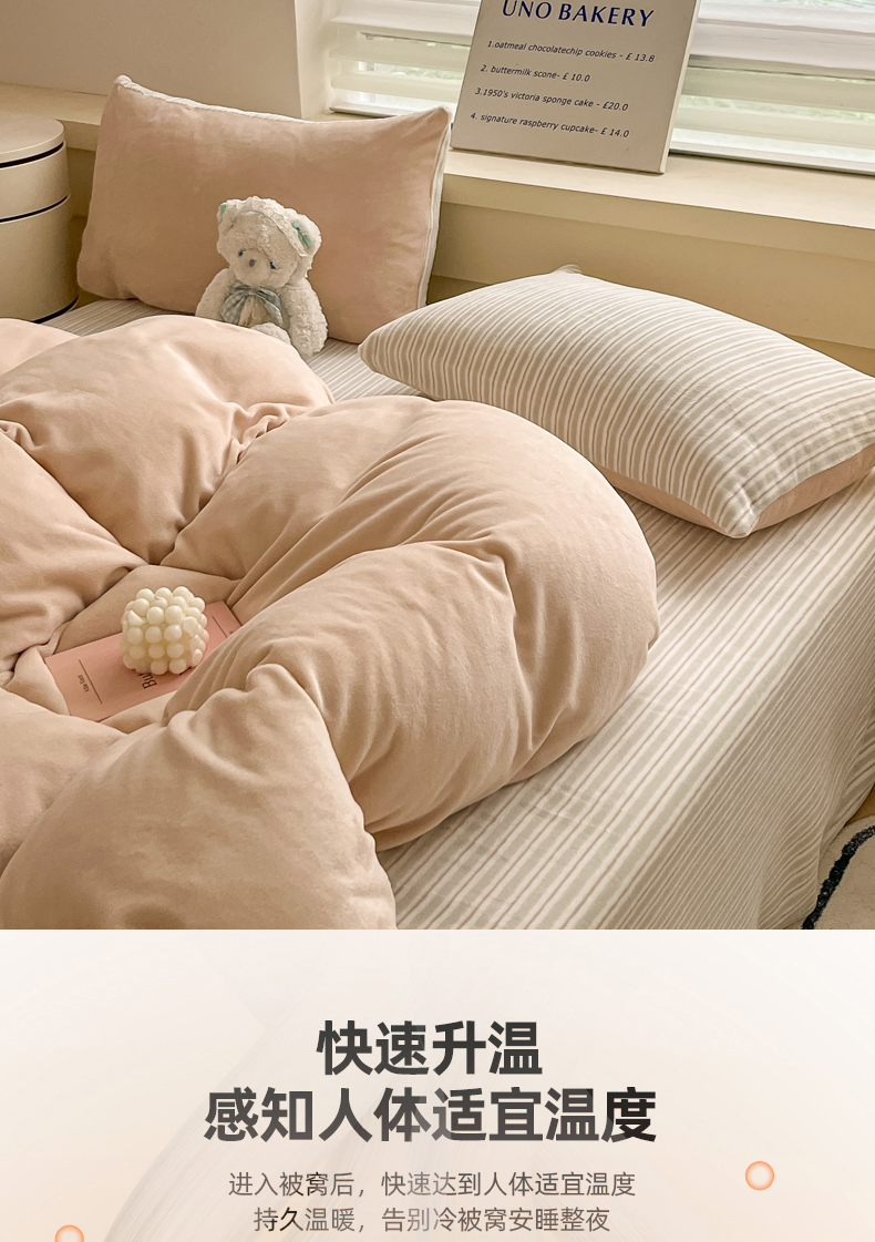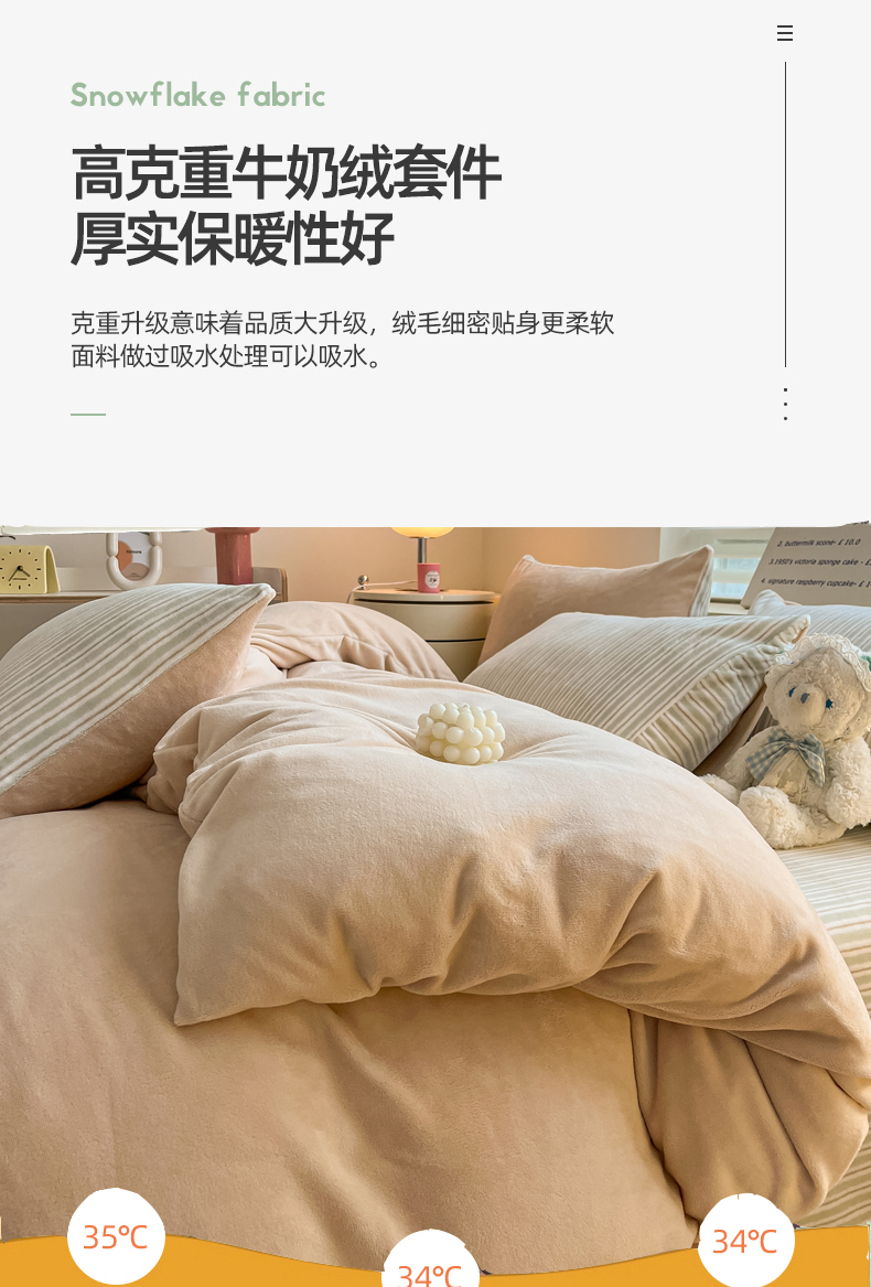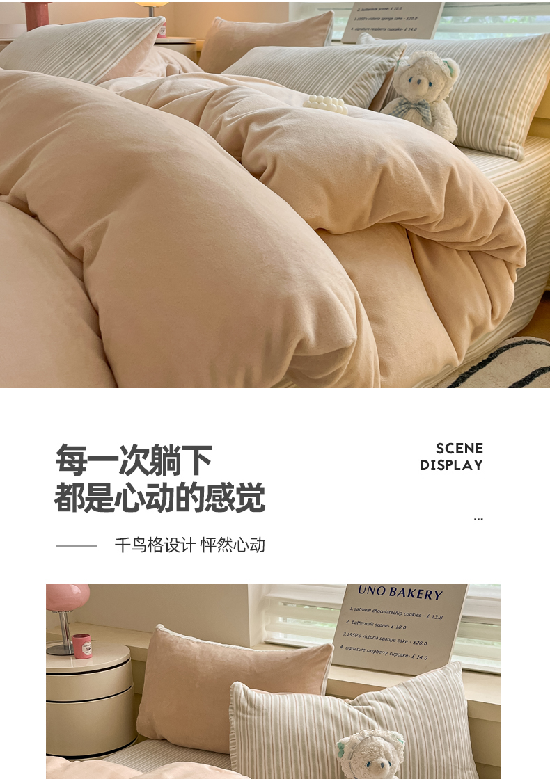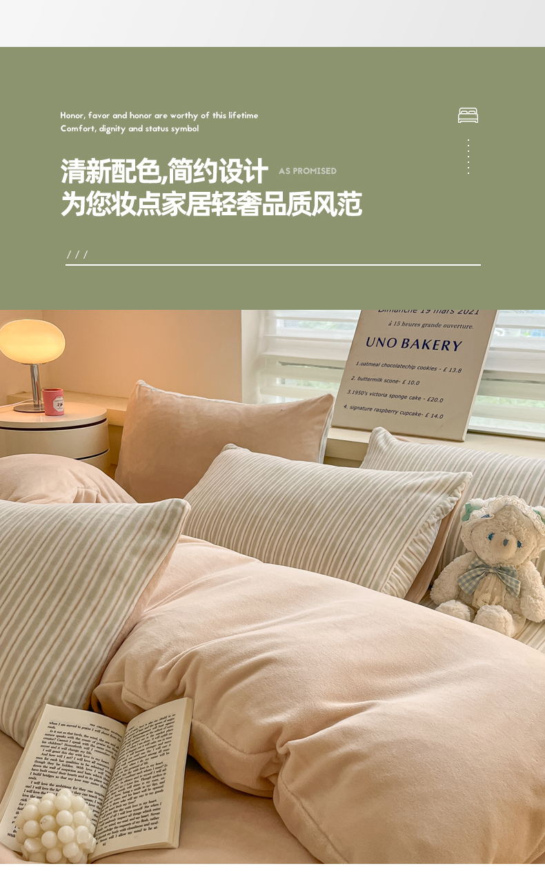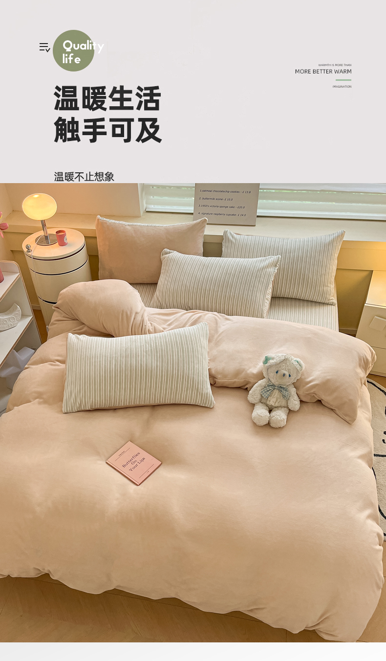 当前位置: 91家纺网 > 商品网购 > 床品套件 > 四件套 > 法莱绒四件套 > 三朵家纺 2025秋冬新款法莱绒混搭系列四件套 米驼+细条