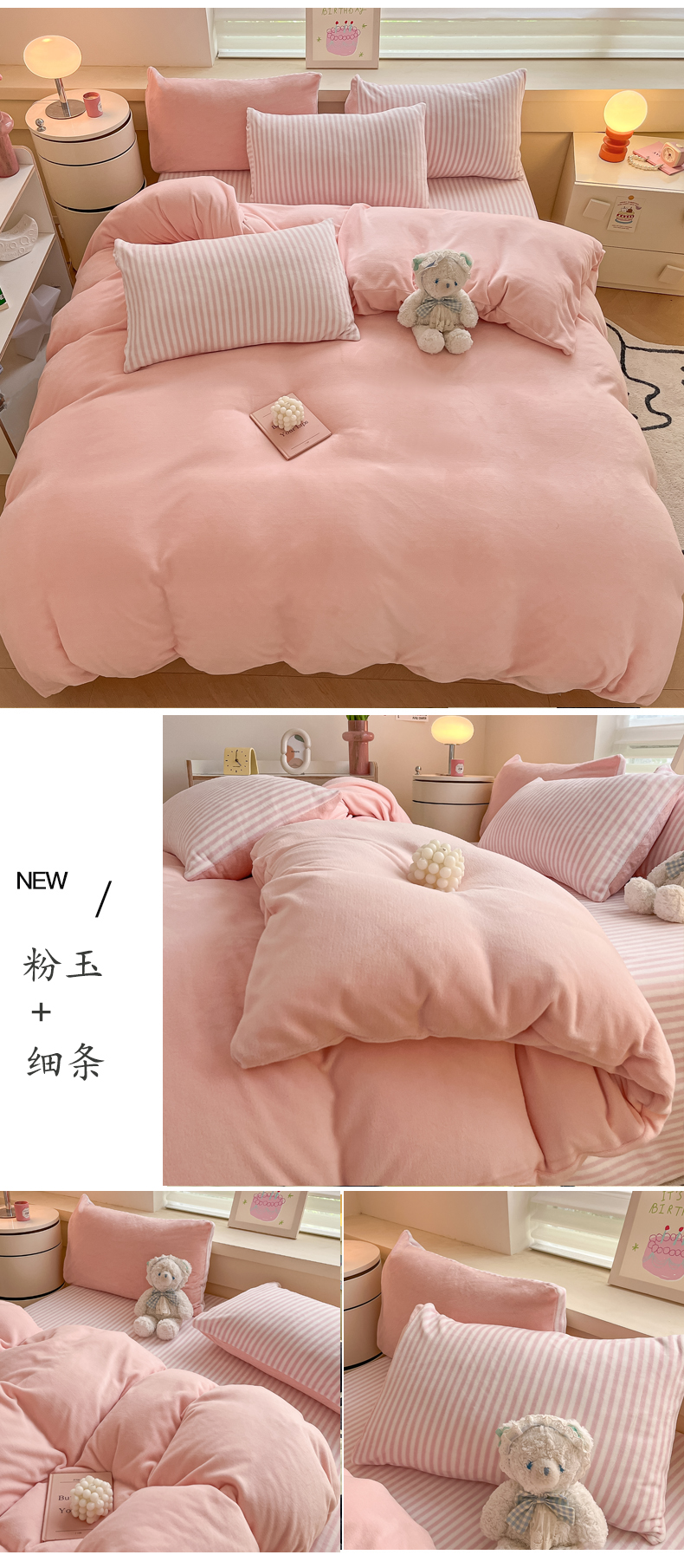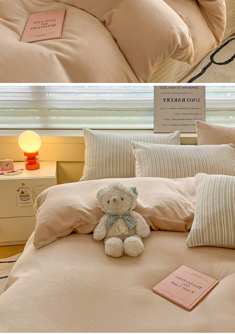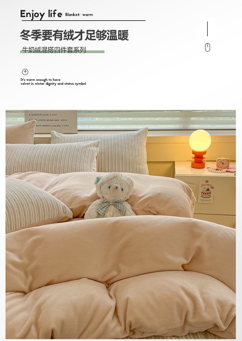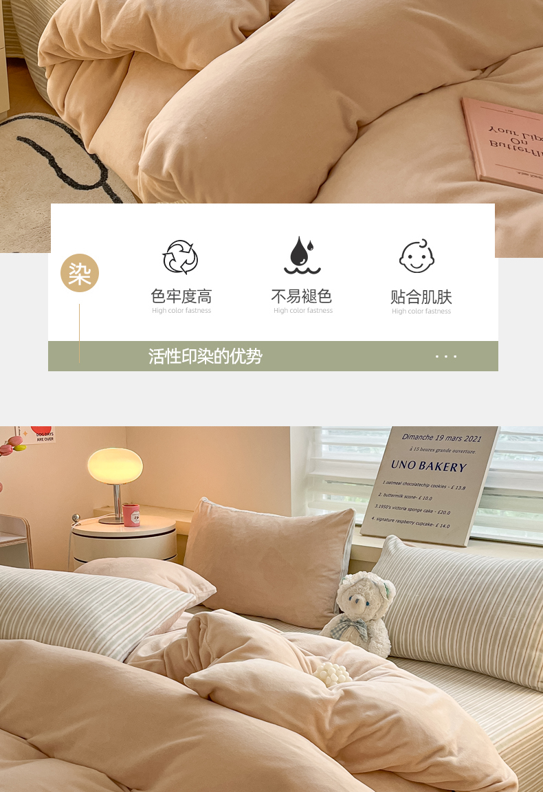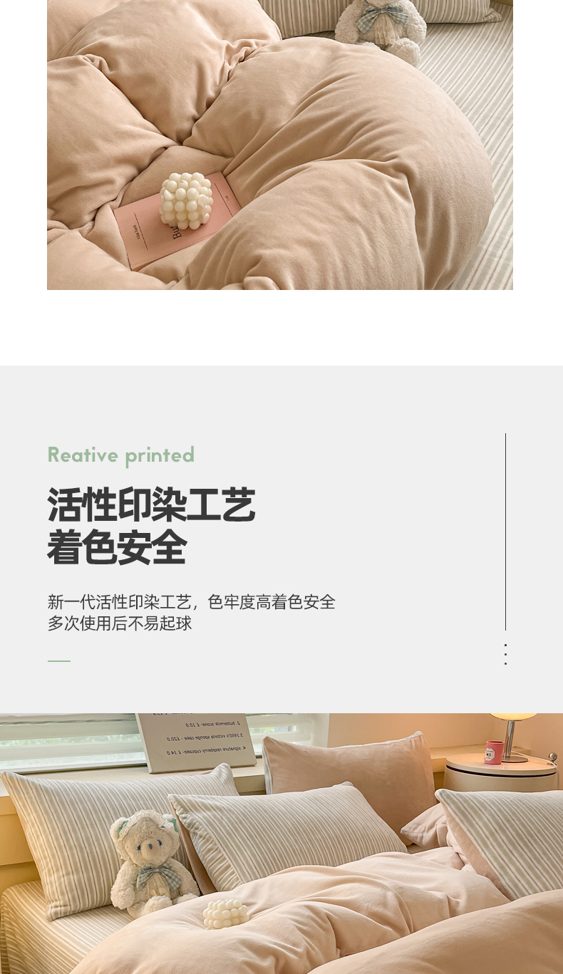 当前位置: 91家纺网 > 商品网购 > 床品套件 > 四件套 > 法莱绒四件套 > 三朵家纺 2025秋冬新款法莱绒混搭系列四件套 米驼+细条