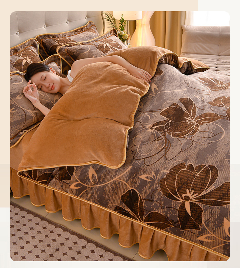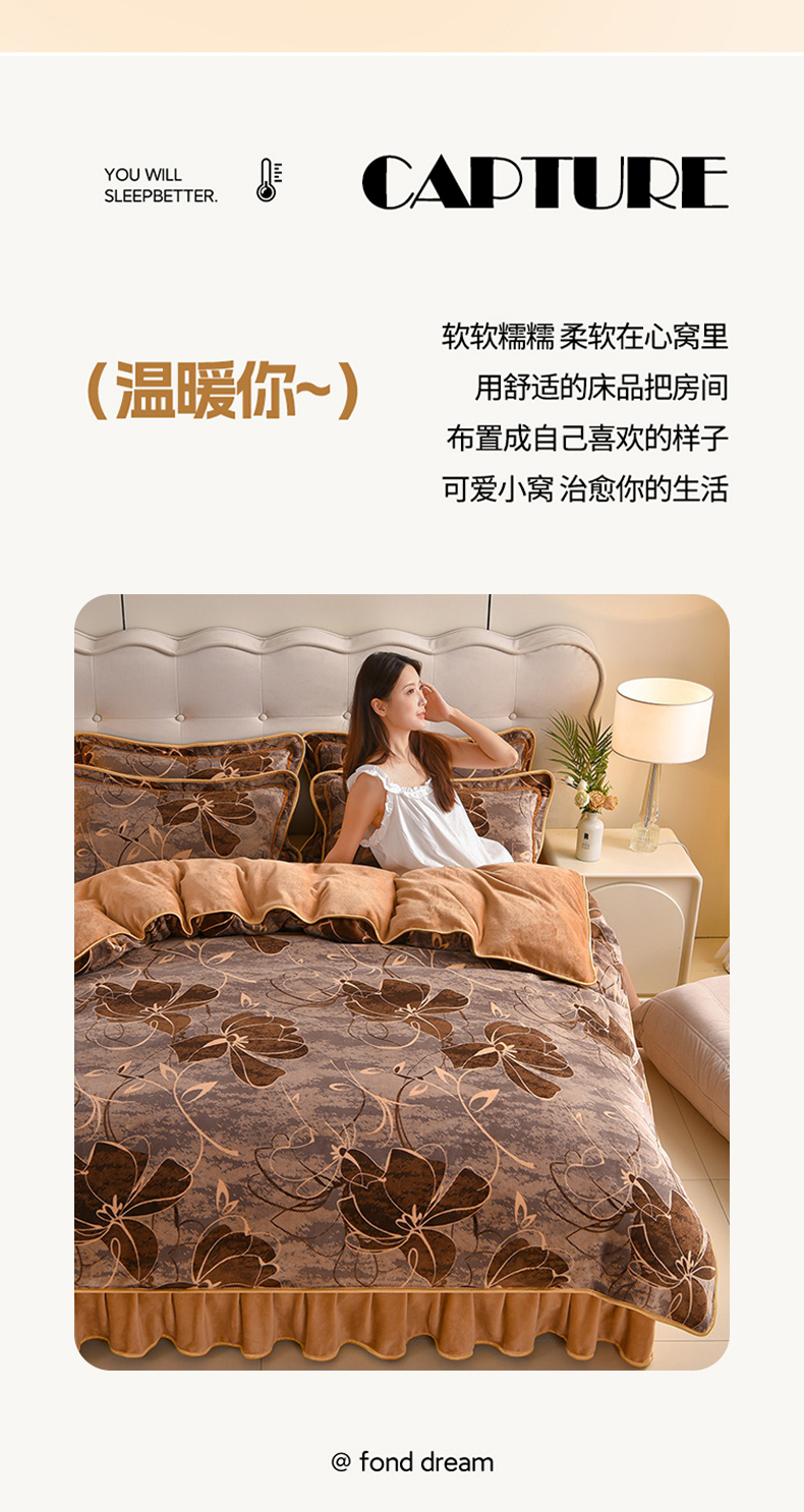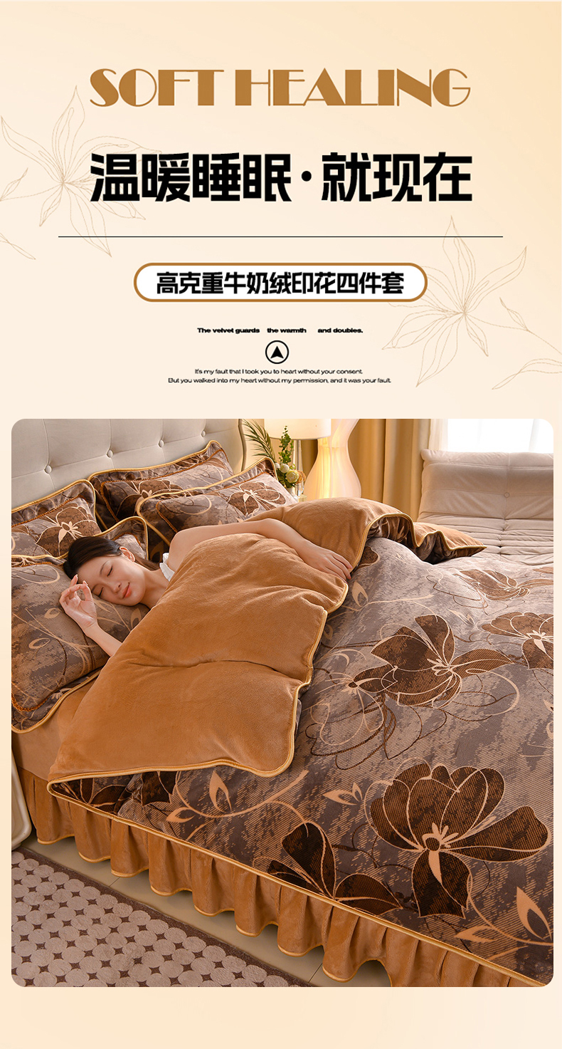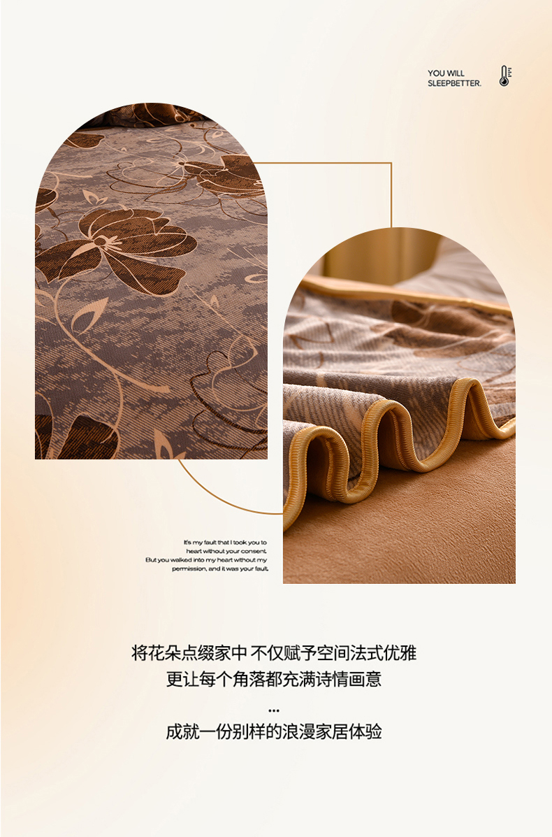佳一 2025新款高克重8-9斤 印花牛奶绒四件套 花样情怀,花样情怀