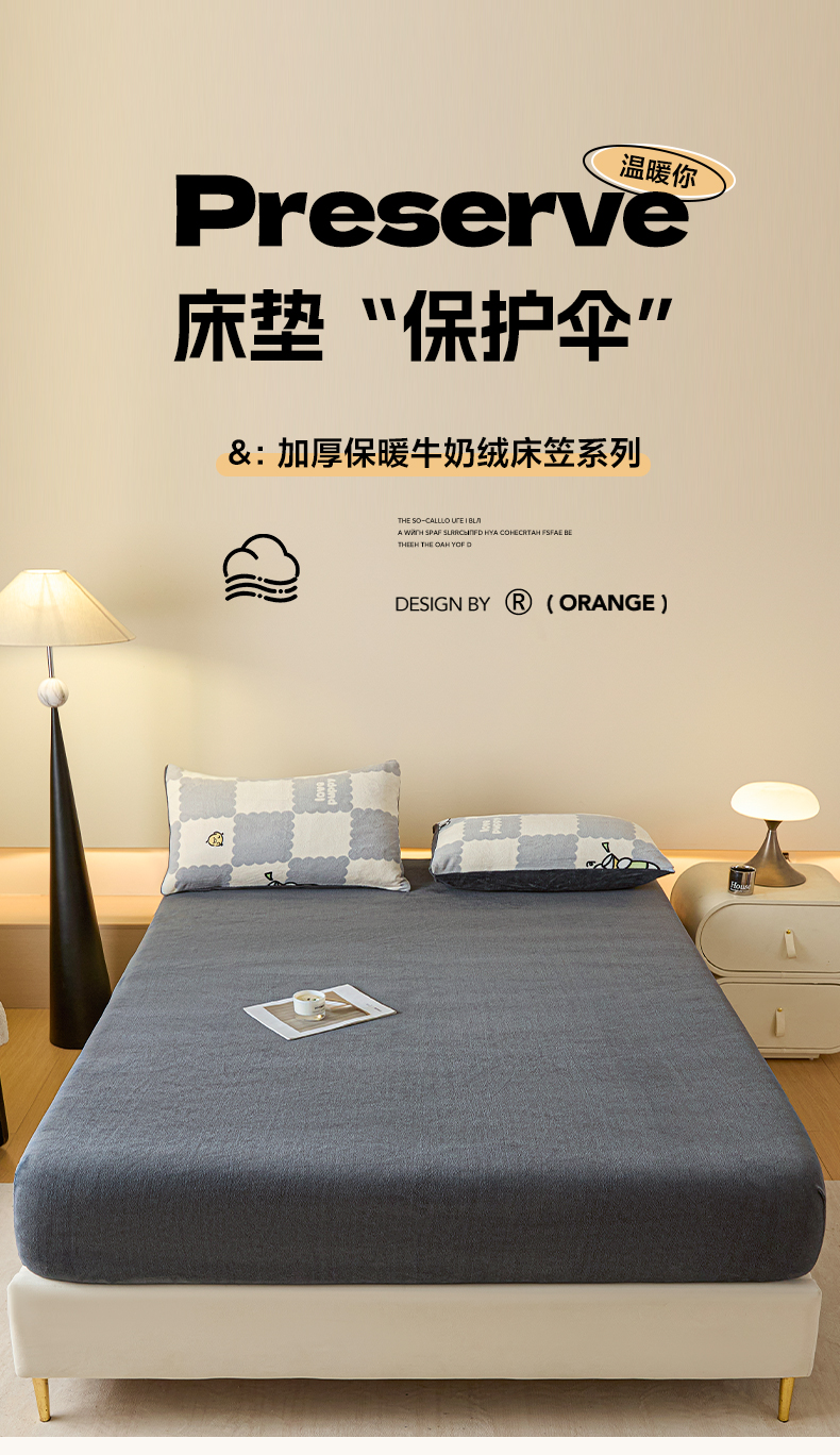 商品名称:(总)摩妮卡 2025新款加厚保暖牛奶绒床笠单床笠床笠单件-保护床垫三件套系列