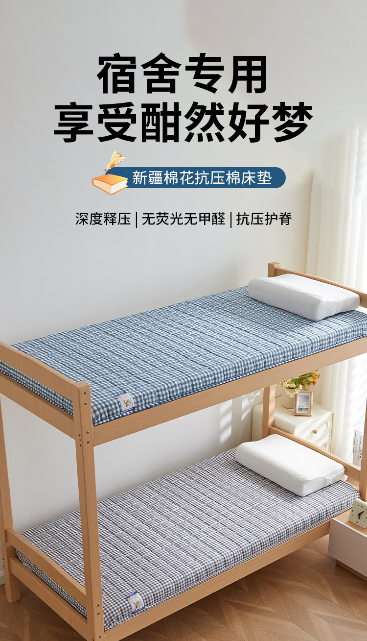 • 91家纺网 家纺一手货源 找家纺 缦吉 2025新款密格新疆棉花抗压棉学生款床垫 黑小格