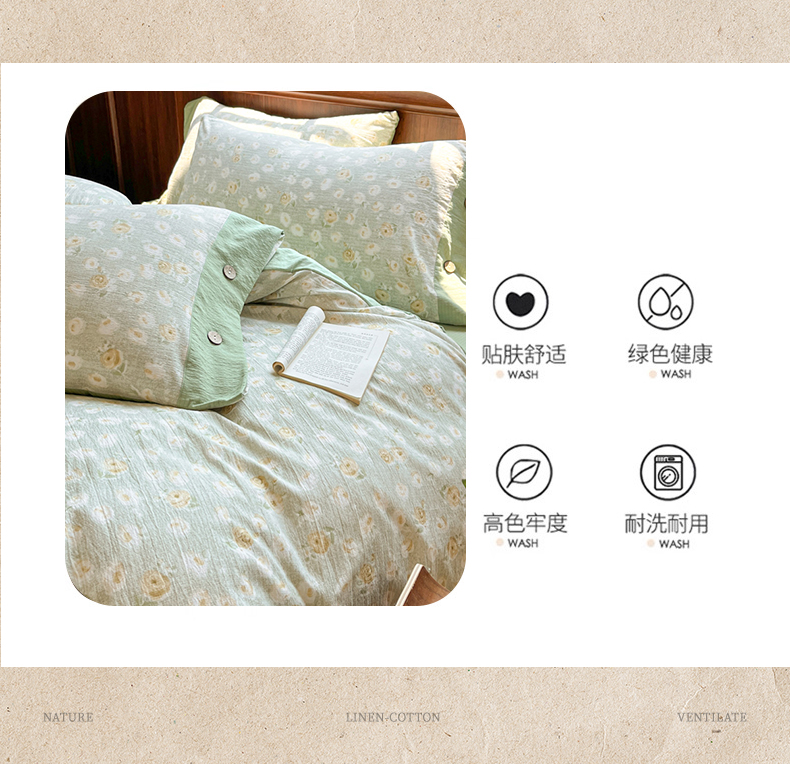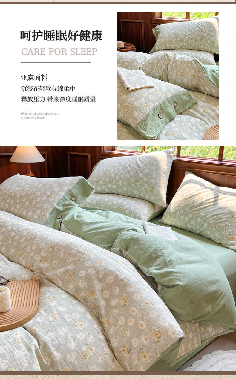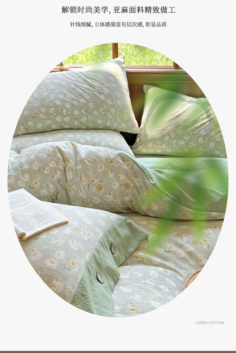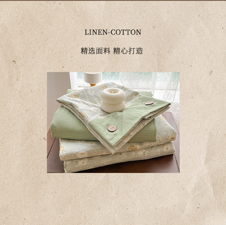 当前位置: 91家纺网 > 商品网购 > 床品套件 > 四件套 > 其它四件套 > 爱彼家纺 2025新款亲肤舒适原麻亚麻水洗棉四件套-纽扣款 黄花似锦
