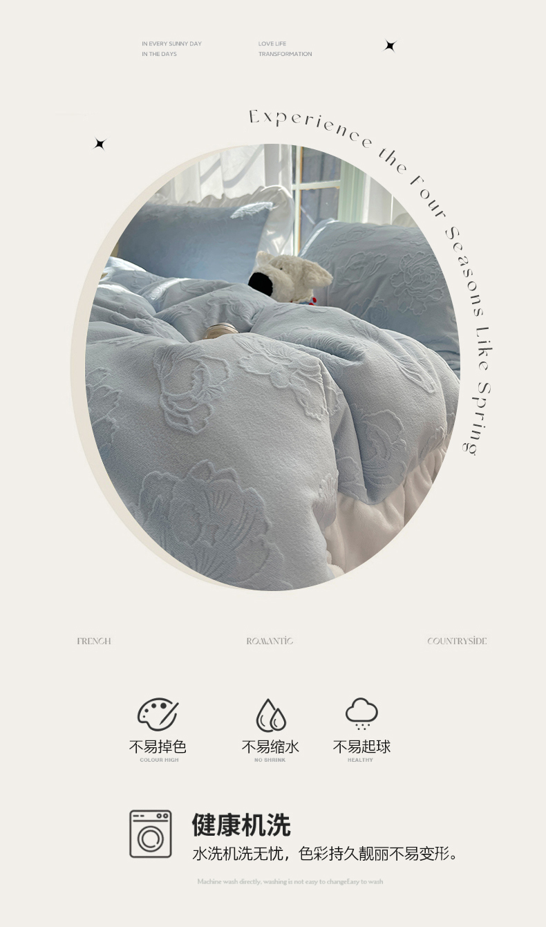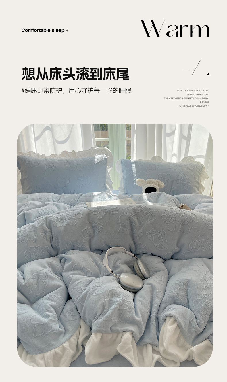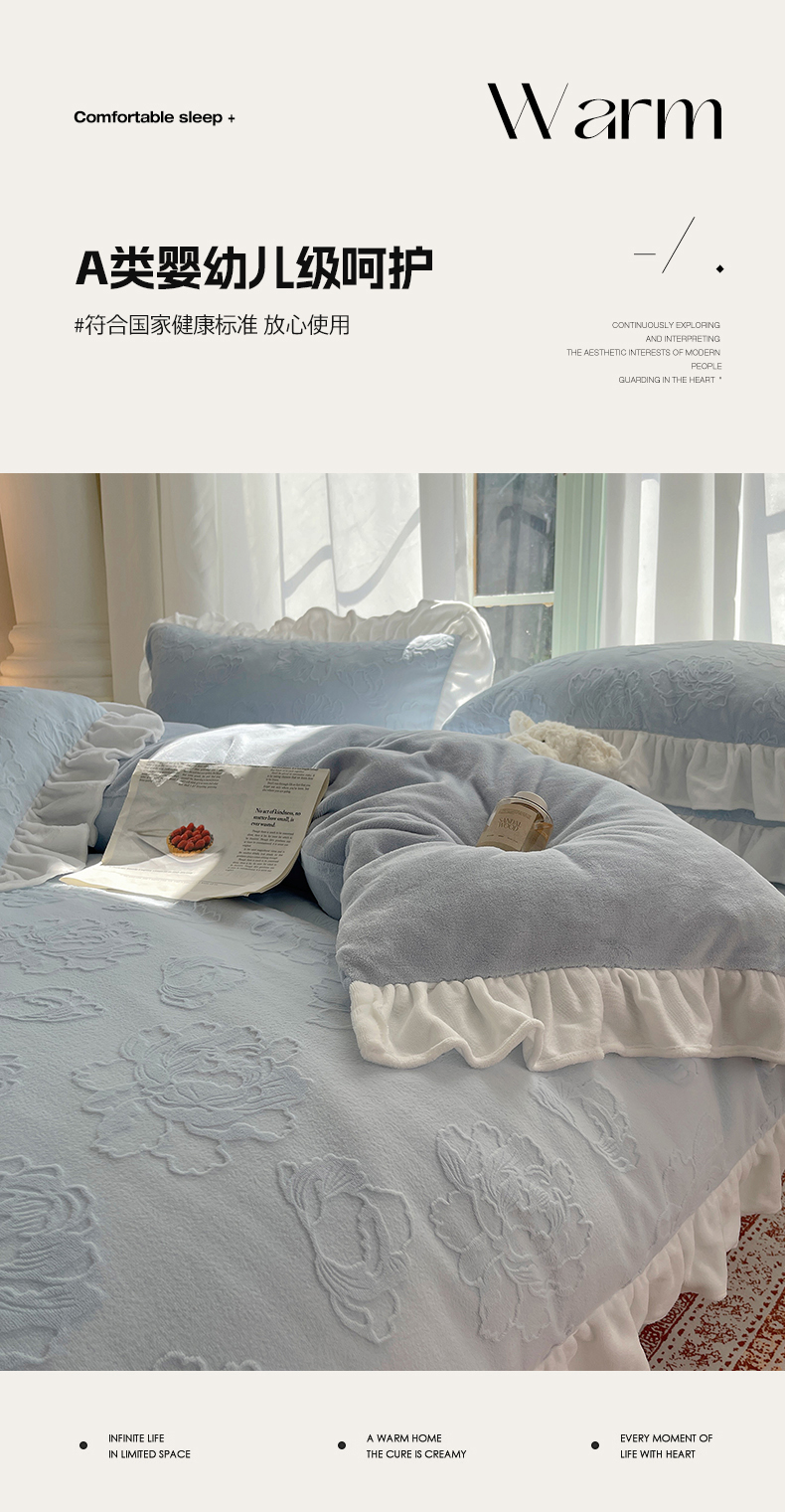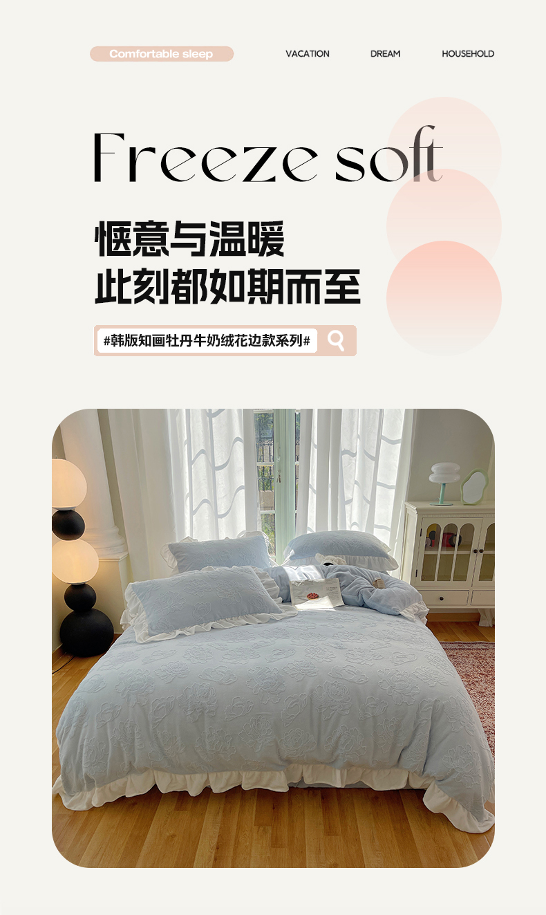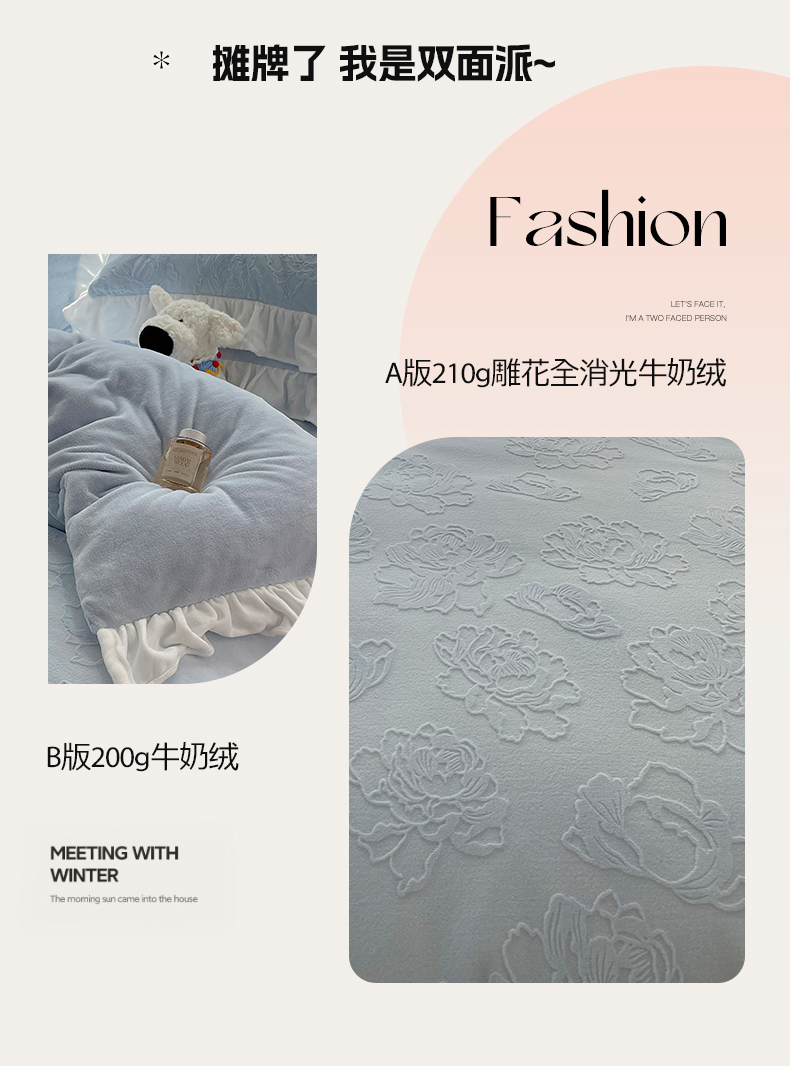 当前位置: 91家纺网 > 商品网购 > 床品套件 > 四件套 > 牛奶绒四件套 > 六巷胡同 2025新款韩版知画牡丹A类牛奶绒花边款四件套 知画牡丹-蓝