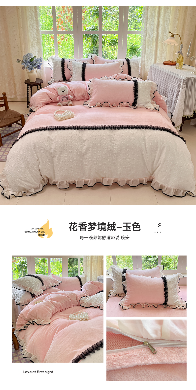 当前位置: 91家纺网 > 商品网购 > 床品套件 > 四件套 > 牛奶绒四件套 > 艺玲家纺 2025新款牛奶绒韩版蕾丝四件套-花香梦境绒 花香梦境绒-玉色