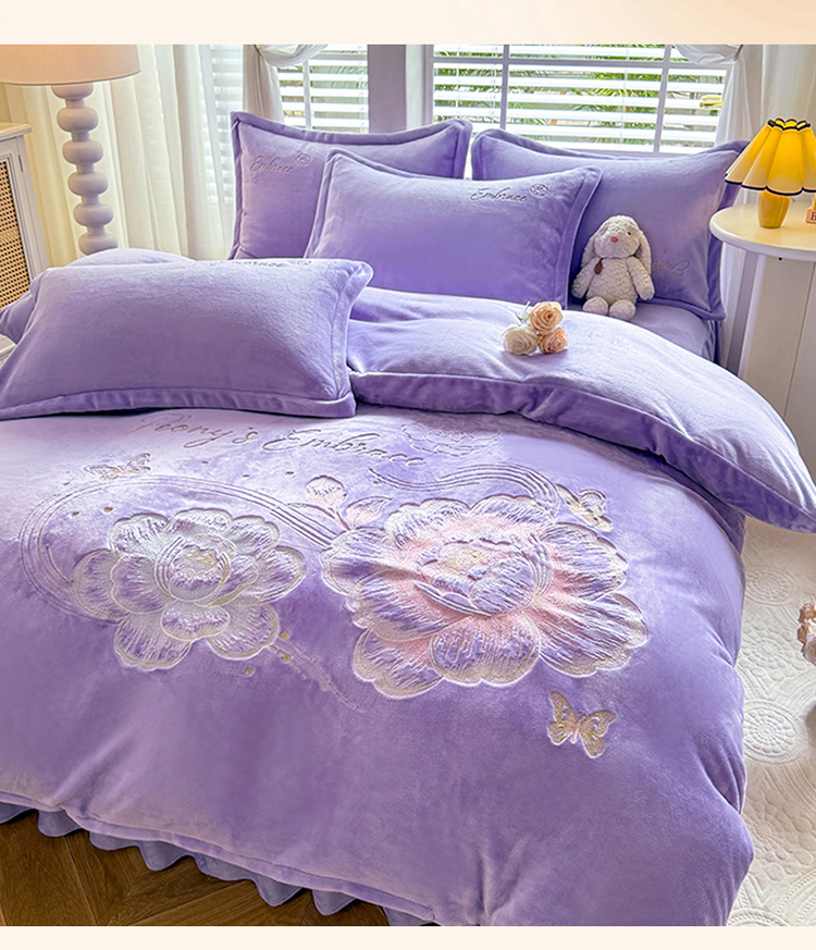 漫布云2025秋冬新款11斤230g全消光牛奶绒夹棉床盖款四件套纯色蕾丝花边刺绣床裙款床盖,蝶恋花-梦幻紫, 蝶恋花-嫩黄, 蝶恋花-新芽绿 ,蝶恋花-婴儿蓝 ,蝶恋花-樱花粉