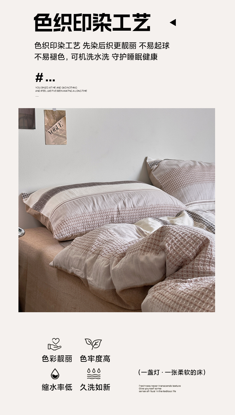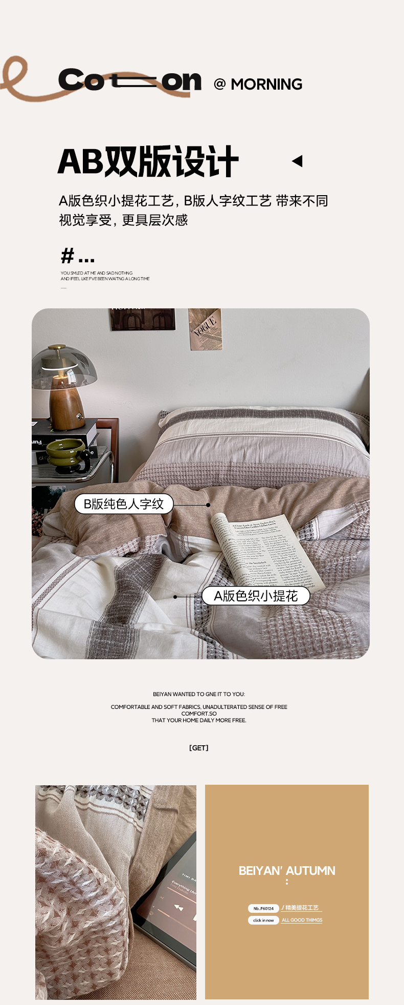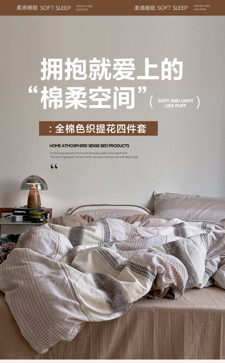 当前位置: 91家纺网 > 商品网购 > 床品套件 > 四件套 > 全棉活性四件套 > 艾咪-Amy ntmy 2025新款全棉色织小提花四件套-絮语 透明PE袋(如需手提无纺布包+5元) 絮语-咖