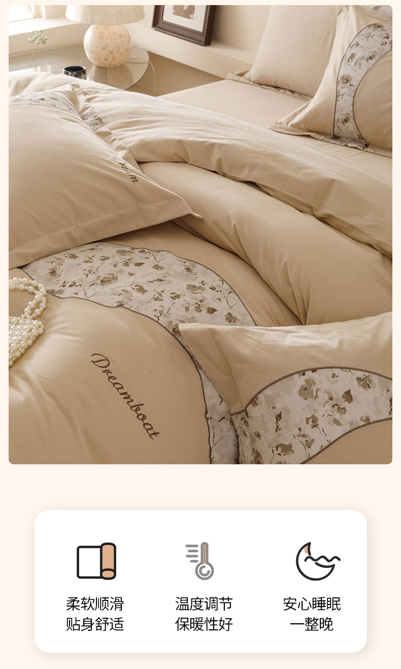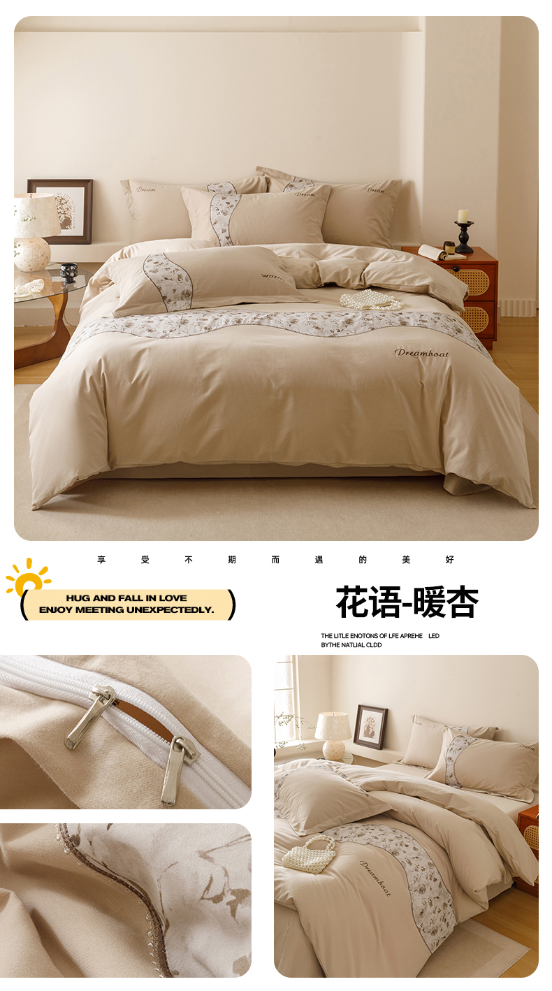当前位置: 91家纺网 > 商品网购 > 床品套件 > 四件套 > 长绒棉四件套 > 艾莱家纺 2025新款A类新疆长绒棉纯棉加厚柔顺磨毛四件套-花语 花语-暖杏