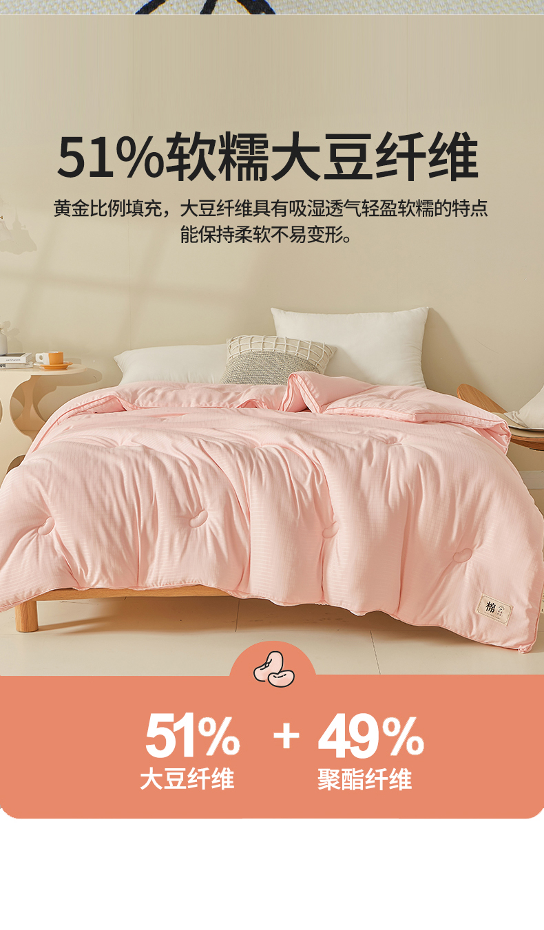• 91家纺网 家纺一手货源 找家纺 晚悠家纺 2025新款提花A类原棉大豆纤维被子被芯春秋被冬被供货直播网销 粉色