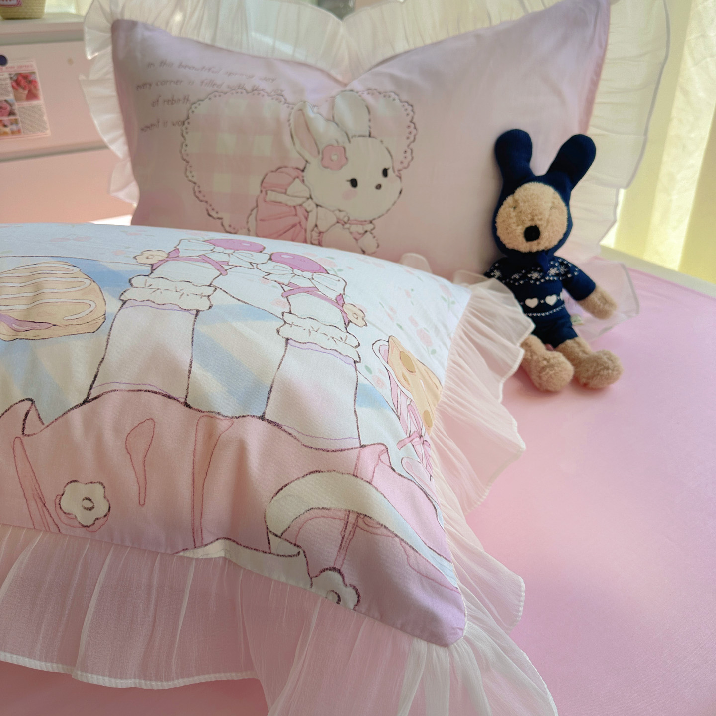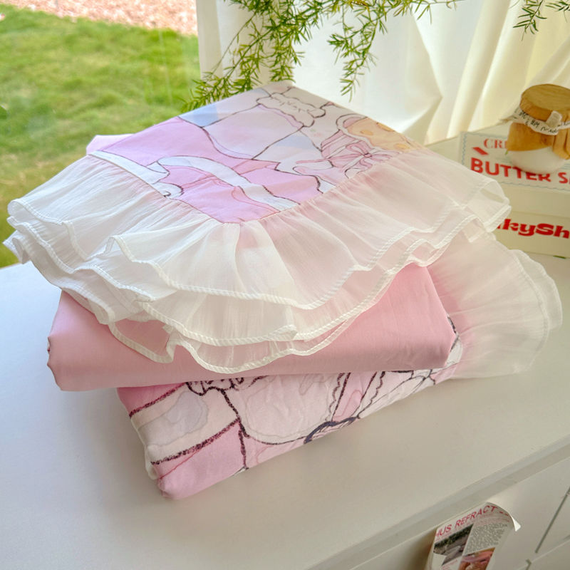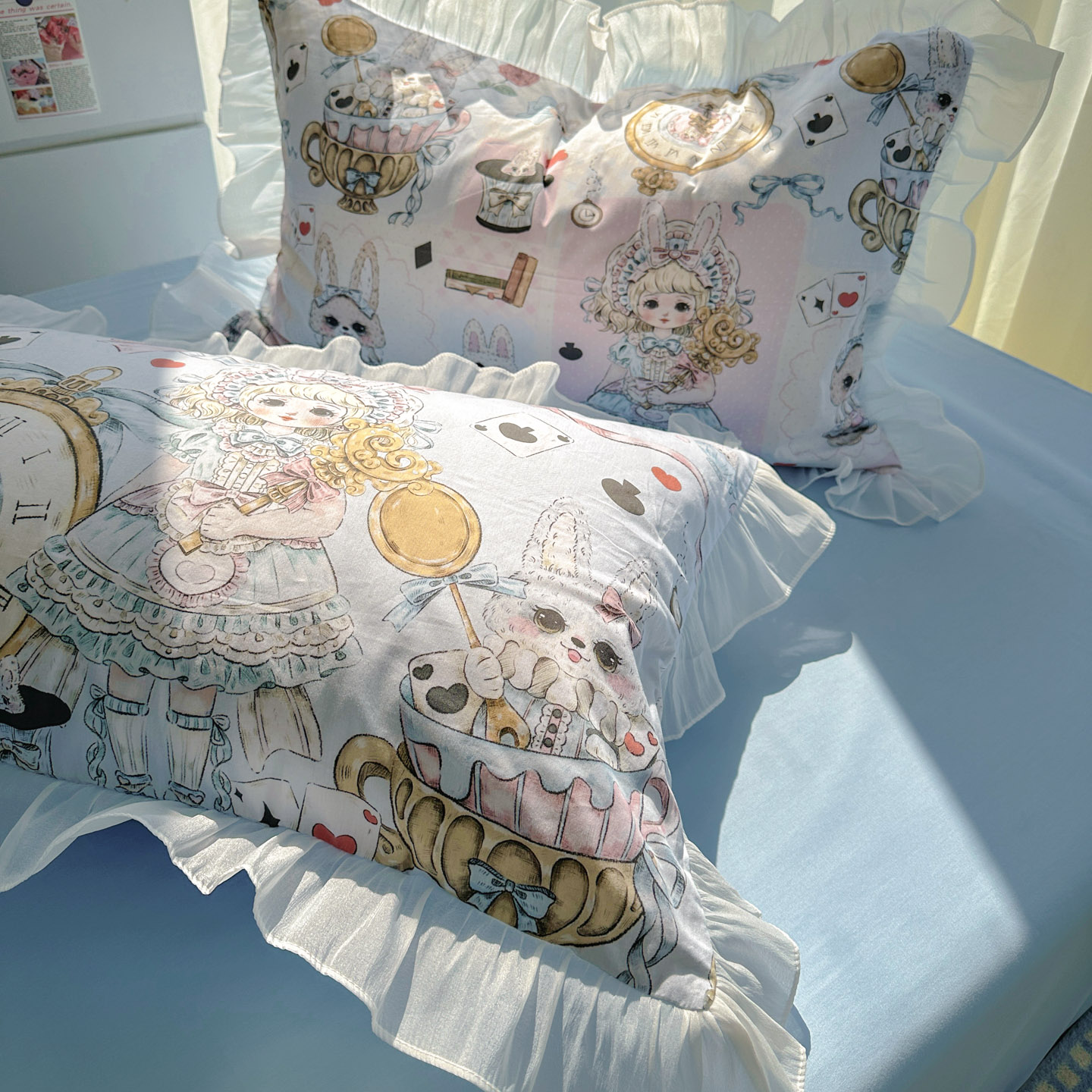 (总)希诺家居 2025新款纯棉洛丽塔风花边韩版萝莉风奶油风可爱卡通全棉四件套,爱丽丝,春日出逃,告白序曲