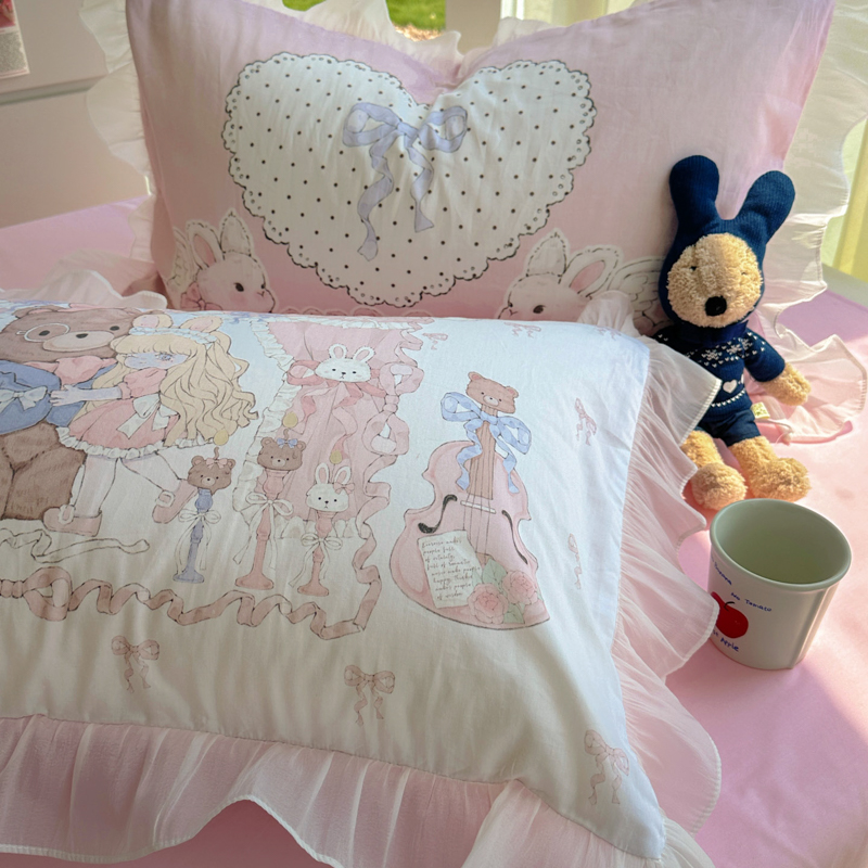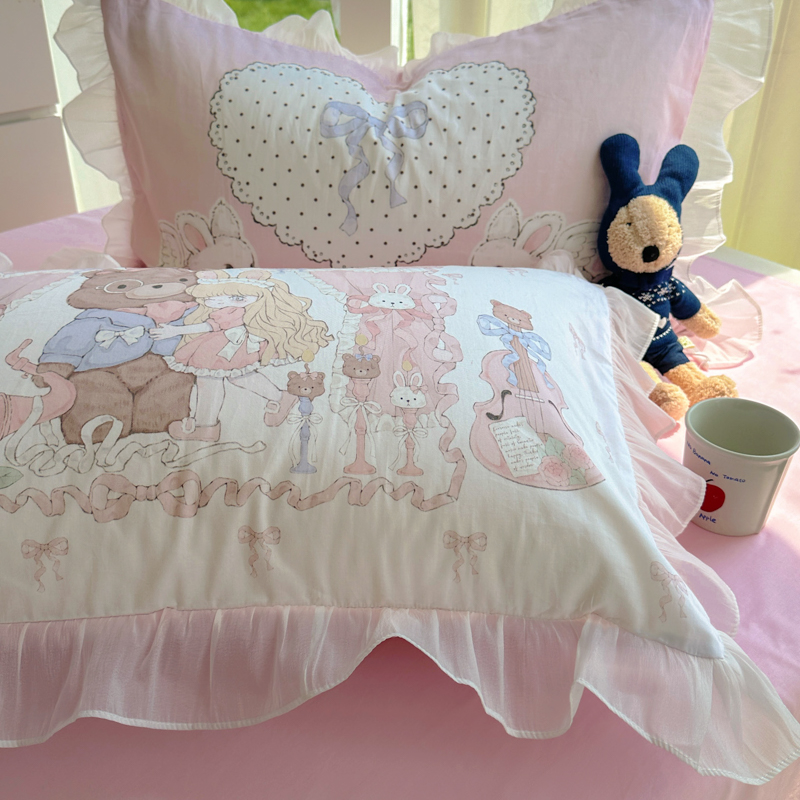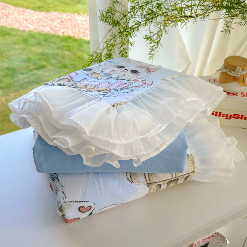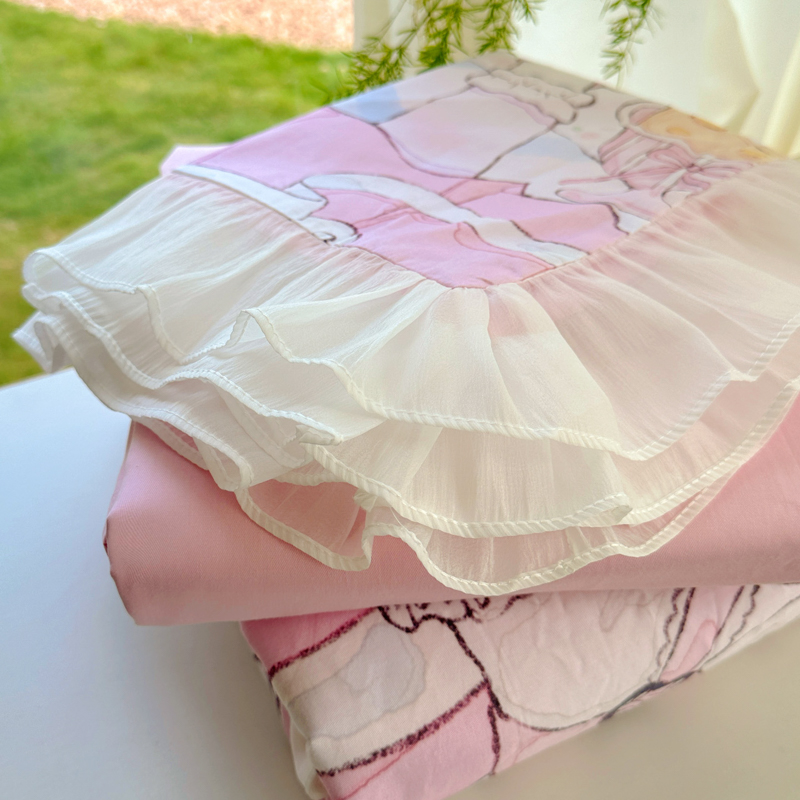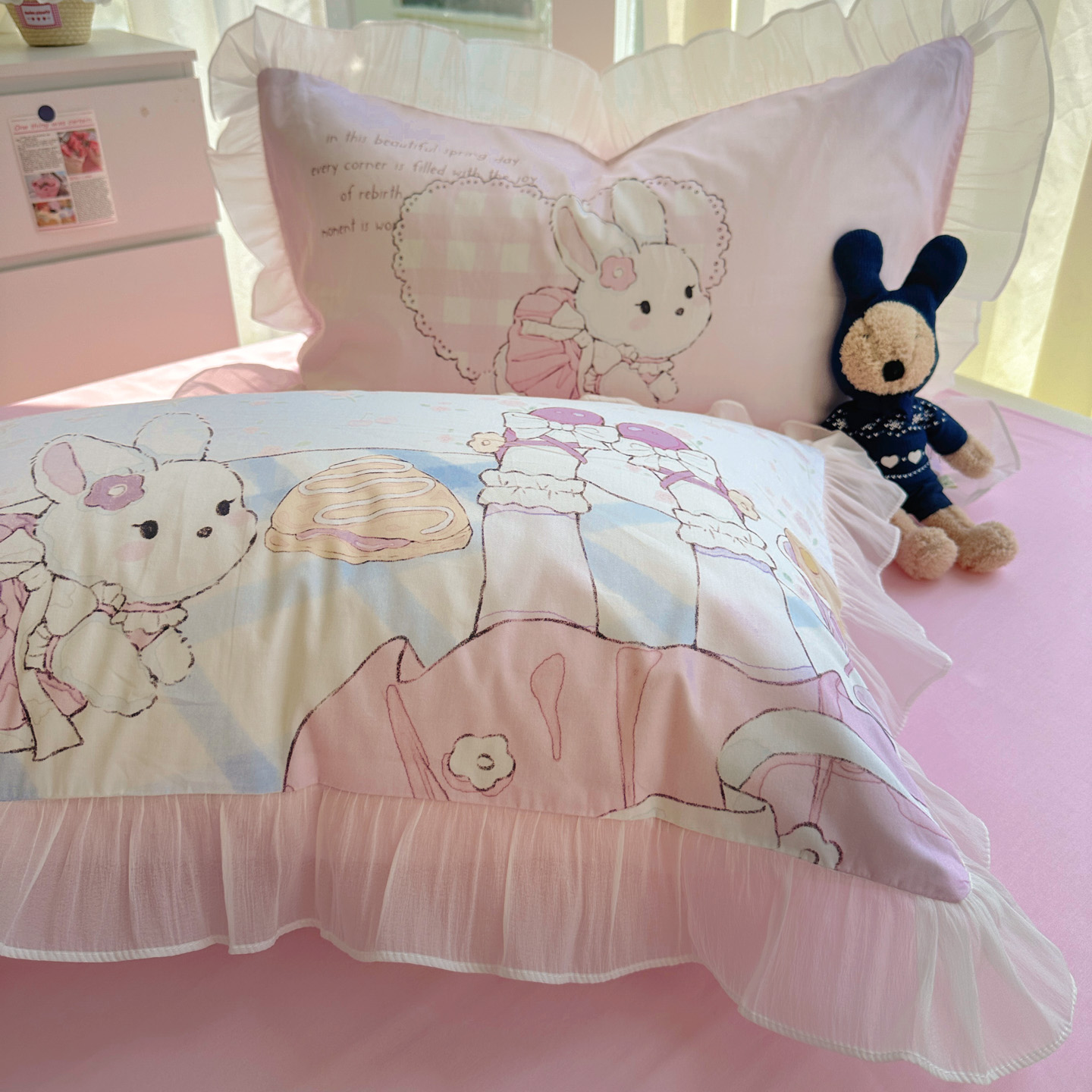 (总)希诺家居 2025新款纯棉洛丽塔风花边韩版萝莉风奶油风可爱卡通全棉四件套,爱丽丝,春日出逃,告白序曲