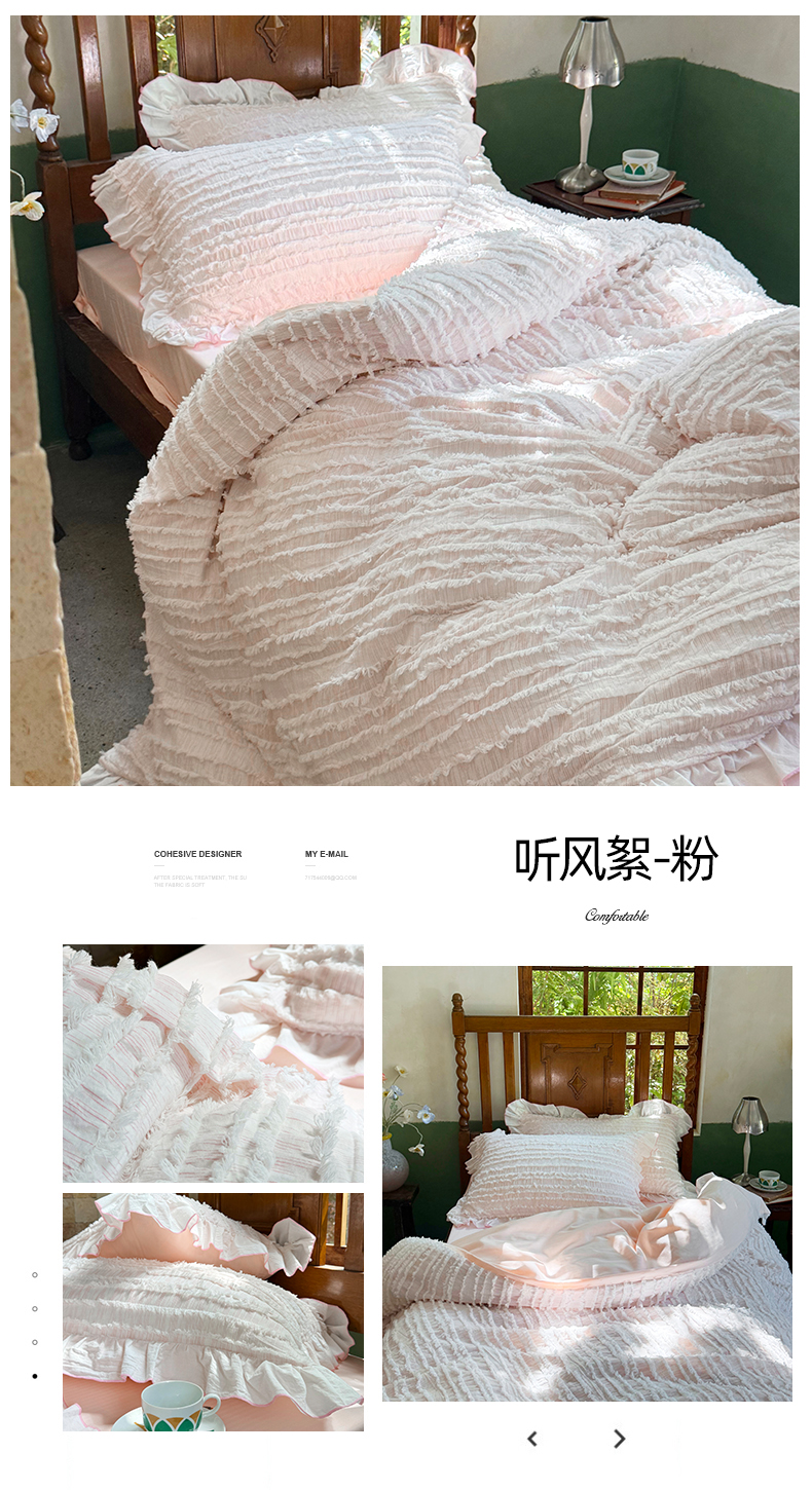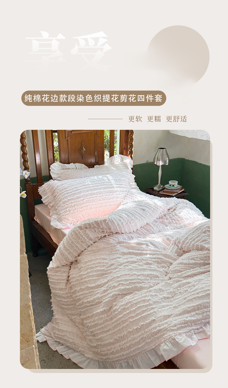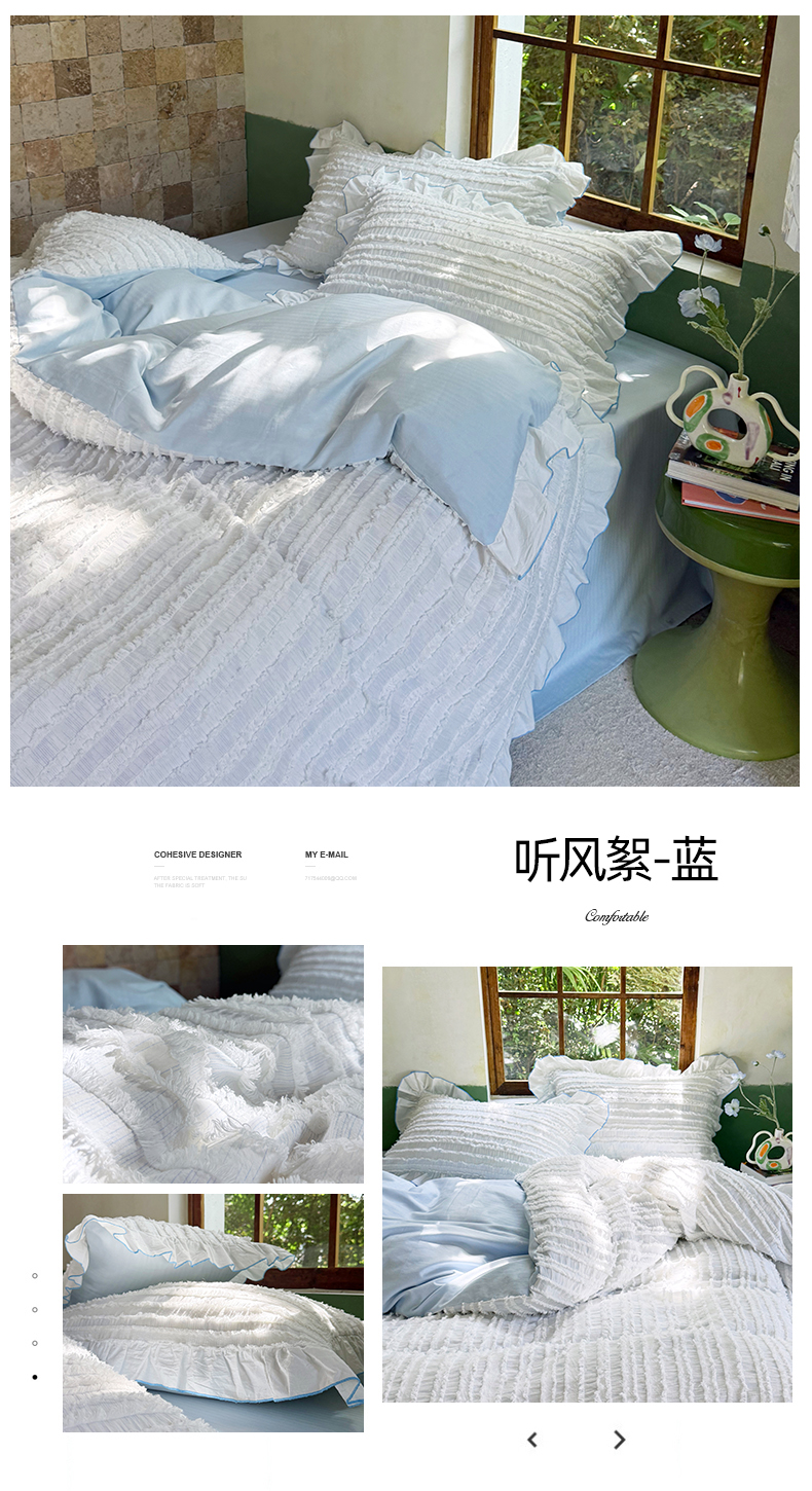 当前位置: 91家纺网 > 商品网购 > 床品套件 > 四件套 > 全棉普通四件套 > 山舍家居 2025新款全棉纯棉色织段染纯棉花边四件套-听风絮系列 听风絮-蓝