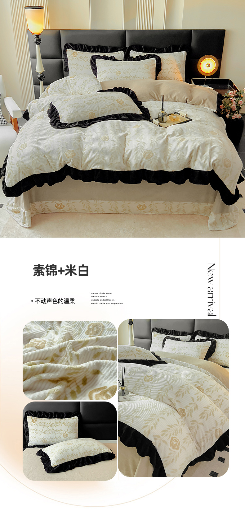 (总)找底底家纺 2025新款花边9-10斤牛奶绒床盖款四件套,花妖,梨花落,小樱桃,紫蔻
