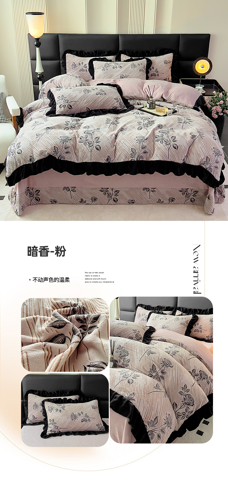 (总)找底底家纺 2025新款A类法式浪漫烂花赫本风牛奶绒四件套,暗香-粉,暗香-奶咖,陌上花开,墨韵叠香-粉,墨韵叠香-奶兮,慕香-咖+粉,慕香-奶兮,素锦-紫,素锦+米白,陌上花开-蔷薇