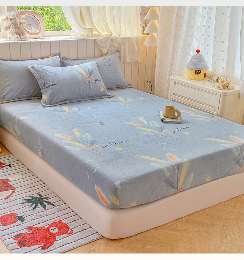• 91家纺网 家纺一手货源 找家纺 家贝爱 2025新款高克重加厚牛奶绒床笠单床笠床笠单品 情人草灰