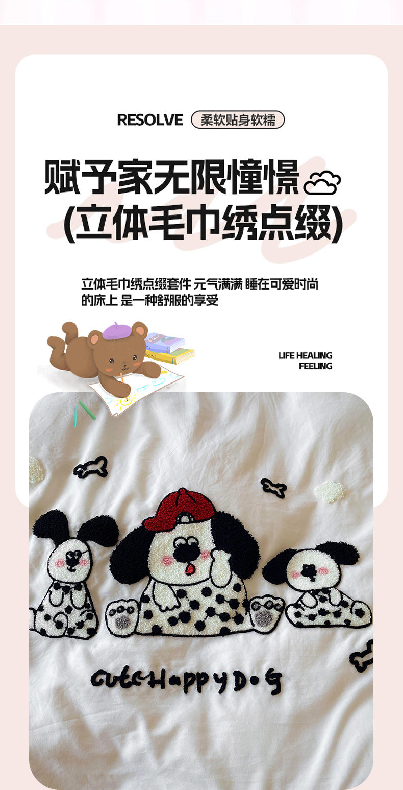 当前位置: 91家纺网 > 商品网购 > 床品套件 > 四件套 > 毛巾绣四件套 > 凯洛奇 2025新款软糯1水洗棉毛巾绣卡通四件套(提供买家秀) 斑点狗