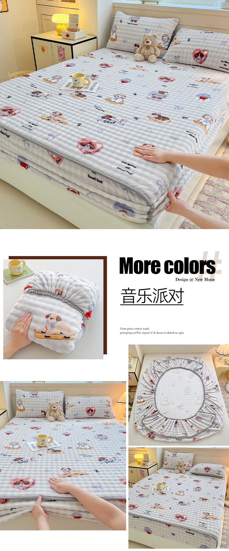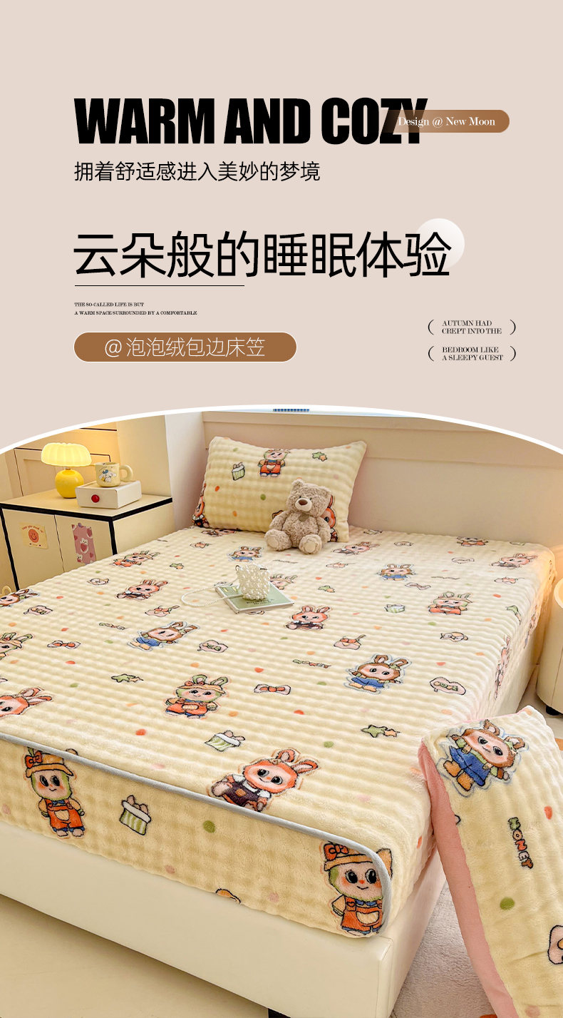 (总)慕梵家居 2025新款泡泡绒床笠泡泡兔绒床罩外贸可以定做尺寸单品床笠单件床笠,爱心物语,抱抱熊,潮玩布布-咖,潮玩布布-米,开心喵喵,凯特猫,迷你爱心,奶瓶萌犬,甜筒女孩,甜心派对,小精灵,小胖哒,小熊乐园,星月传奇,幸运狗,音乐派对