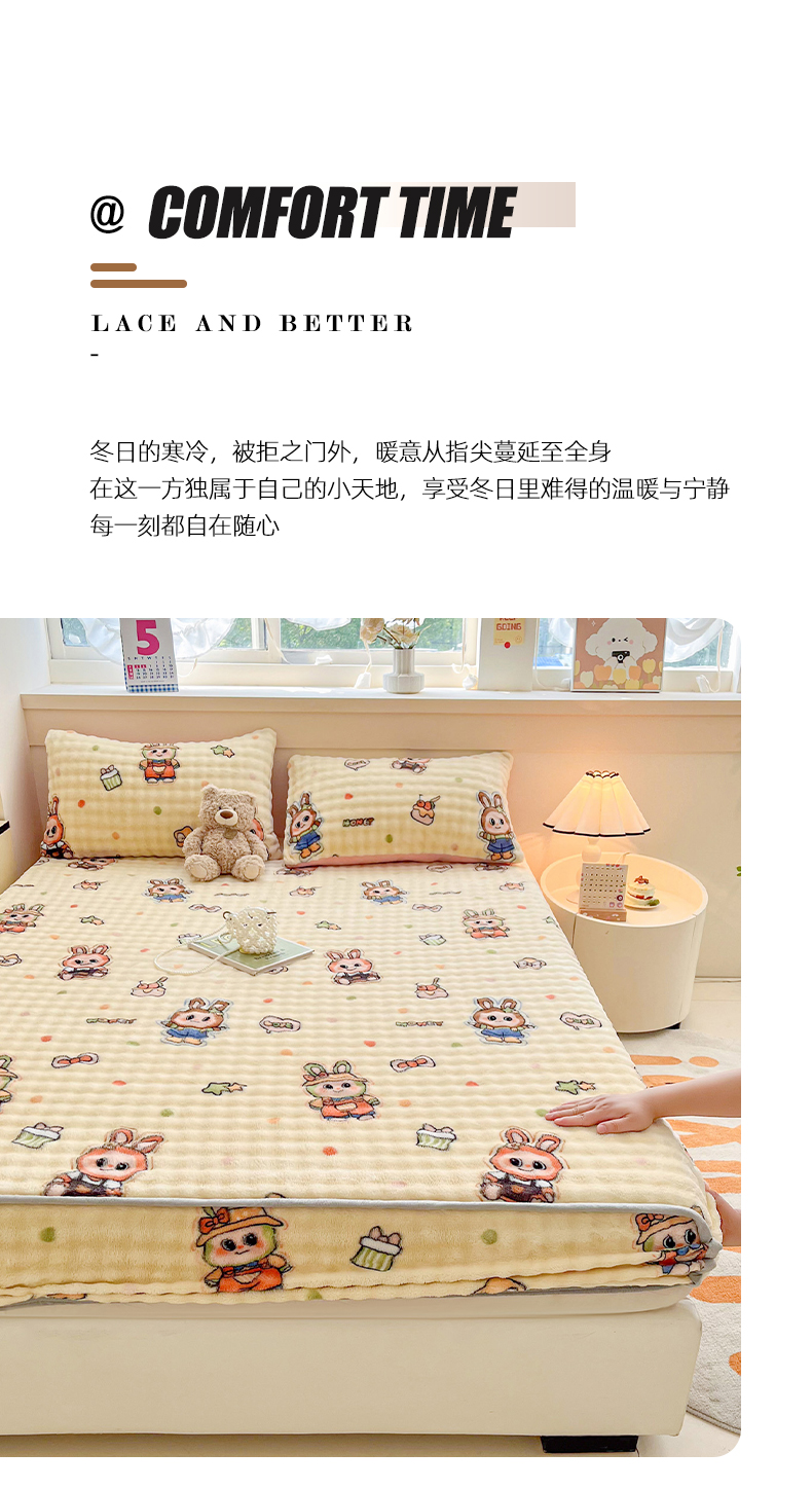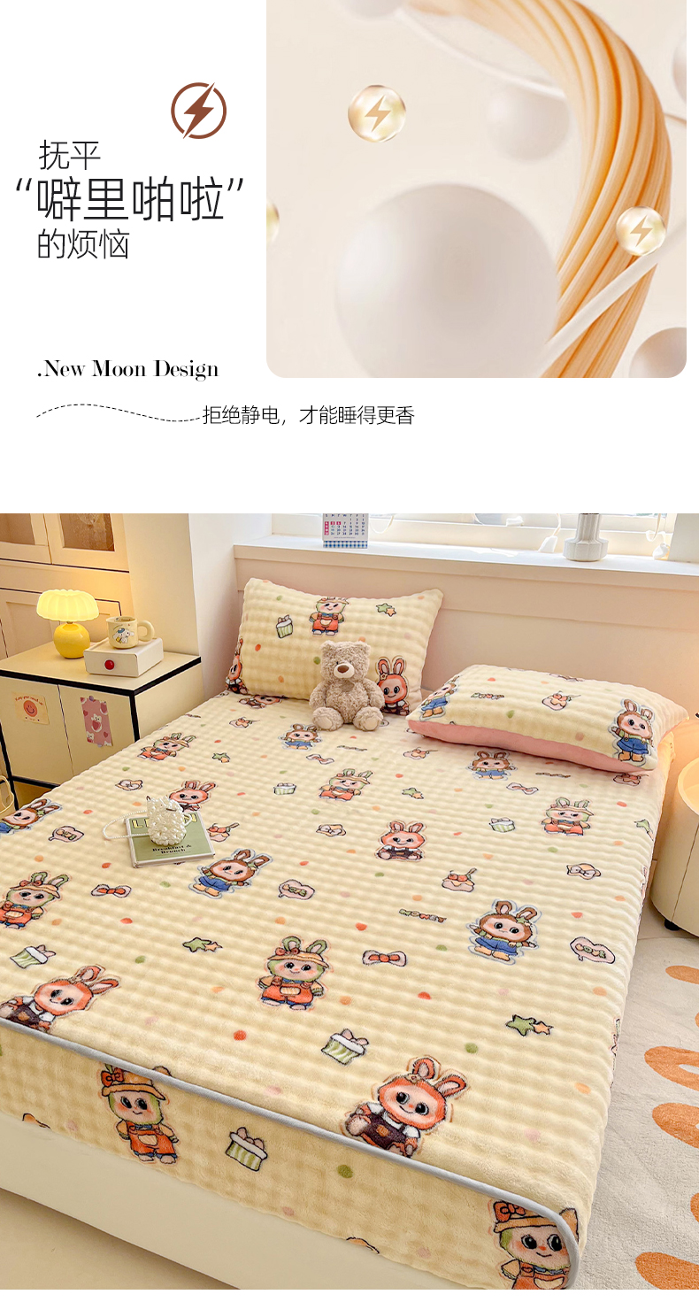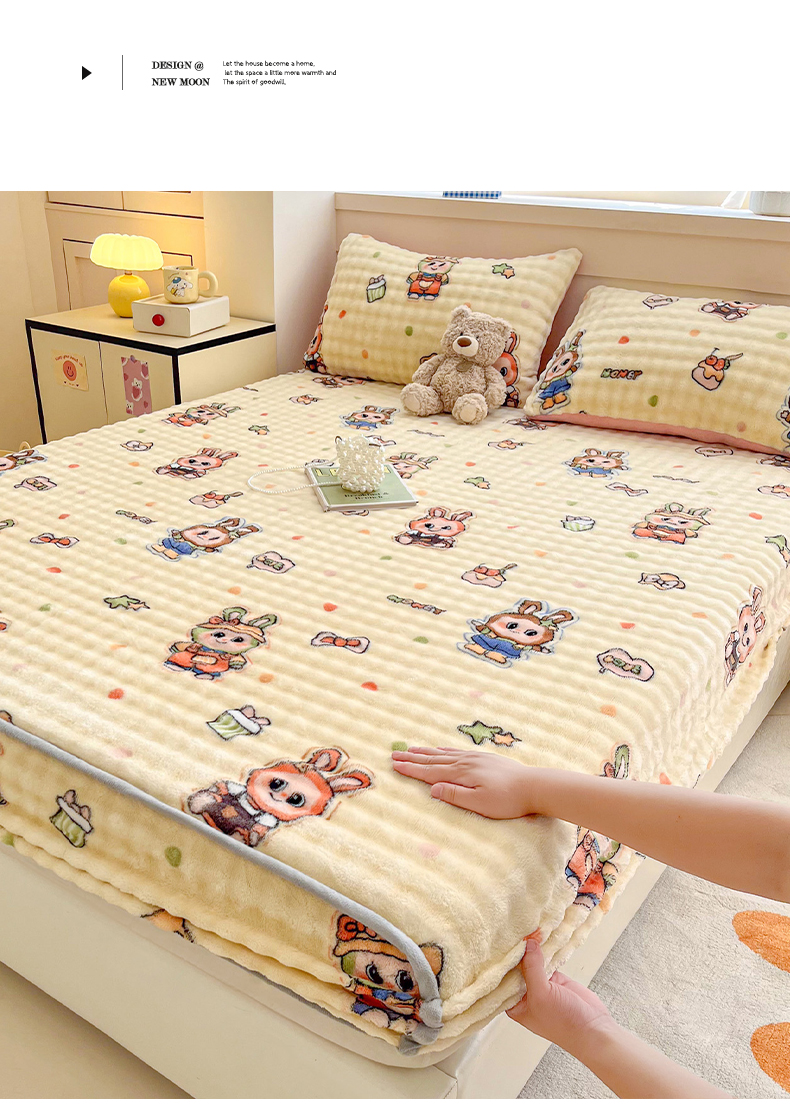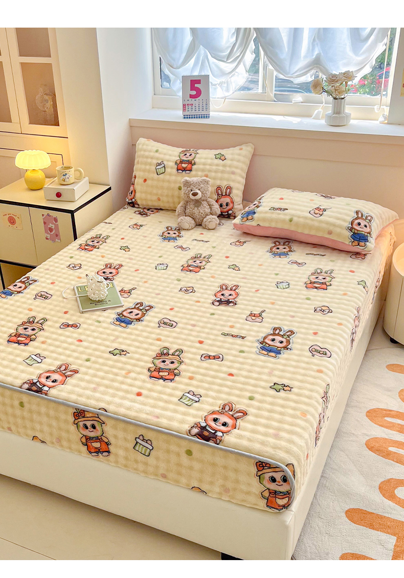 (总) 慕梵 2025雪花绒印花卡通床笠牛奶绒珊瑚绒床罩,爱心兔,波西米亚,彩虹,草莓兔,太空熊,桃子少女,小恐龙,心想事橙,樱桃女孩,爱心樱桃,繁花似锦,嗨皮狗,浪漫花语,绅士熊,泰迪熊,幸运花绿,字母熊,欢乐花朵,恐龙蓝,毛球,小波浪,小萝卜,小南瓜,星星熊,枝繁叶茂