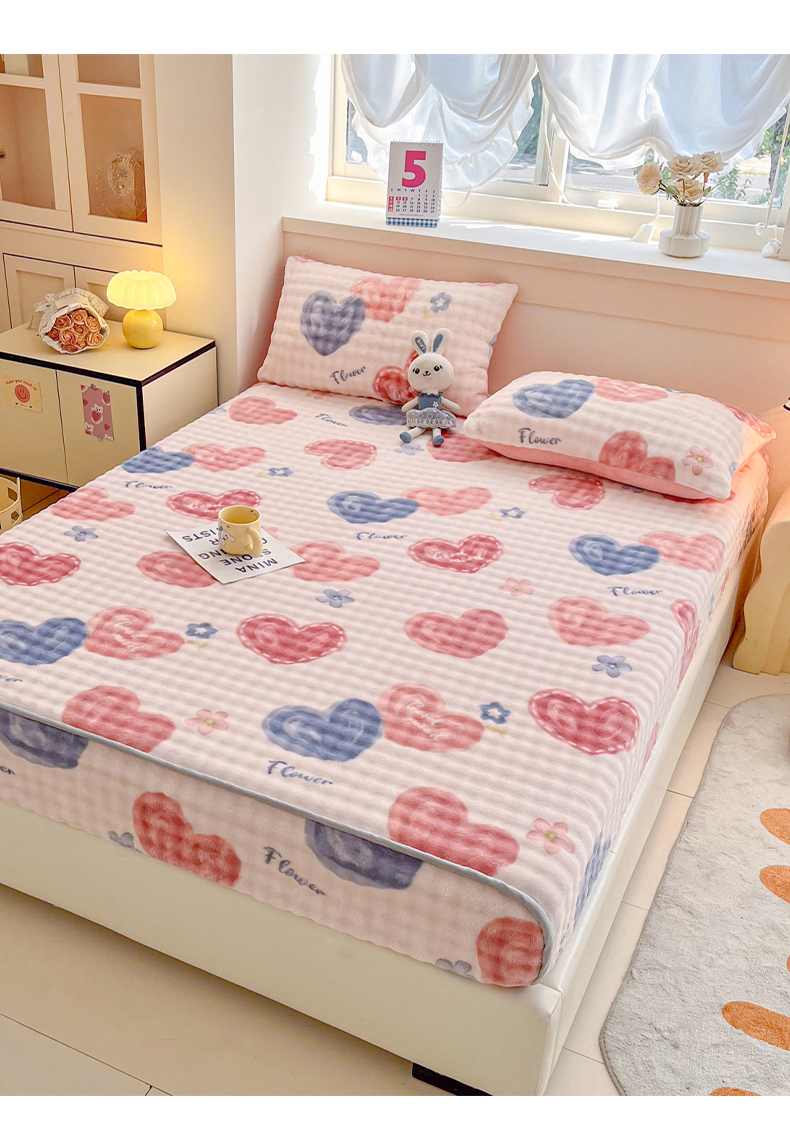(总) 慕梵 2025雪花绒印花卡通床笠牛奶绒珊瑚绒床罩,爱心兔,波西米亚,彩虹,草莓兔,太空熊,桃子少女,小恐龙,心想事橙,樱桃女孩,爱心樱桃,繁花似锦,嗨皮狗,浪漫花语,绅士熊,泰迪熊,幸运花绿,字母熊,欢乐花朵,恐龙蓝,毛球,小波浪,小萝卜,小南瓜,星星熊,枝繁叶茂