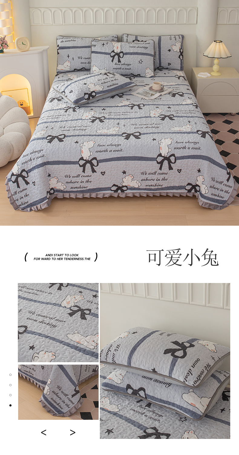 (总)梦莱家纺 2025新款牛奶绒花边单床盖三件套,爱心草莓熊,爱心点点,爱心熊,宝利格,波点熊,花漾玫瑰,花语,可爱南瓜-卡其,可爱南瓜-绿,可爱松鼠,可爱兔兔,库洛米,蓝白条纹格,萌兔乐园-粉,萌兔乐园-蓝,绵绵细语,奇趣南瓜,史努比,摇曳,优雅蝴蝶结,海盐蓝,海洋蓝,奶茶色,奶油紫,樱花粉,优雅灰,砖红色,潮牌熊-灰,潮牌熊-咖,蝶舞,滑板熊猫,可爱小兔,浪漫花语-粉,南瓜爱心,蔷薇花开,时尚熊,微笑熊,心意,摇曳-灰,摇曳-蓝