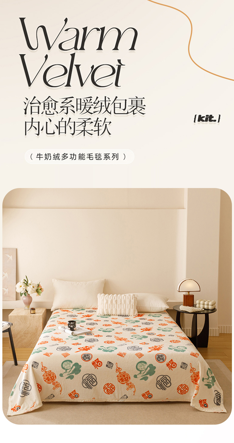 商品名称:悦然毛巾被 2025新款300克印花牛奶绒盖毯休闲毯素色毛毯毯子 流光格咖