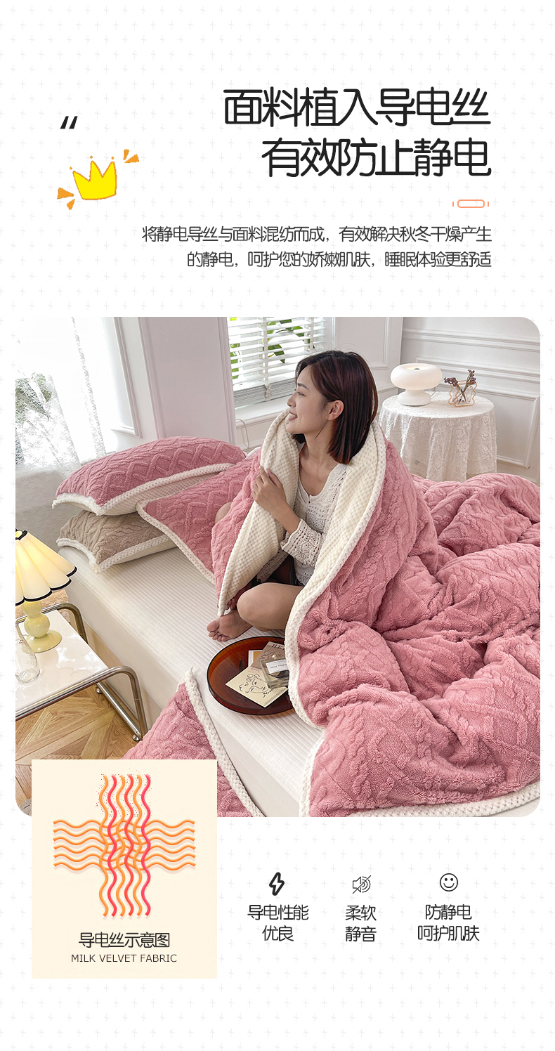商品名称:雅诗帛 冬季加绒四件套云朵绒法莱绒牛奶绒雕花绒水晶绒塔芙绒毛毯学生宿舍保暖加绒加厚珊瑚绒双面绒 冰蓝