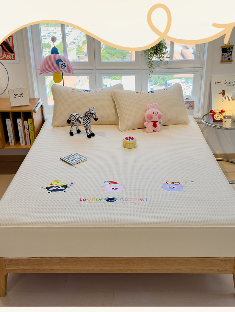 雅诗帛 2025新款华夫格夹棉刺绣床笠单品卡通可爱学生宿舍单品单床笠床罩 萌趣小猫-雾纱粉