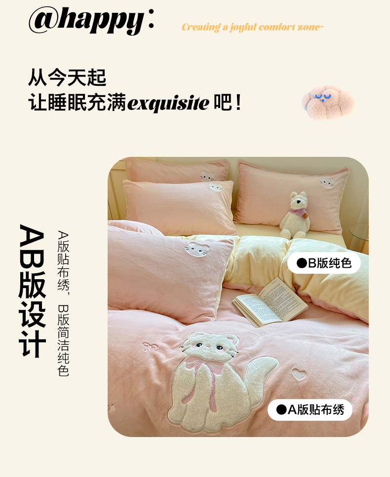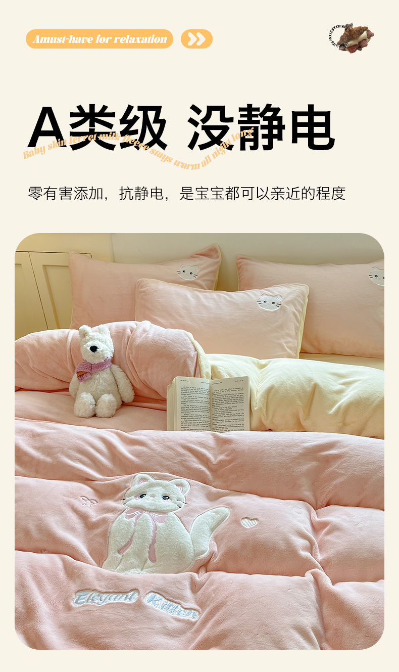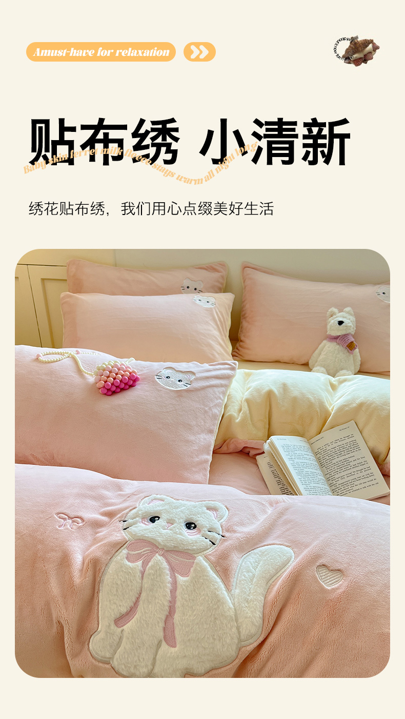 当前位置: 91家纺网 > 商品网购 > 床品套件 > 四件套 > 牛奶绒四件套 > 沐慕 2025新款200克牛奶绒贴布绣四件套 粉嫩淑女喵