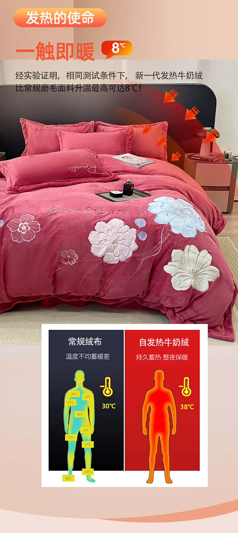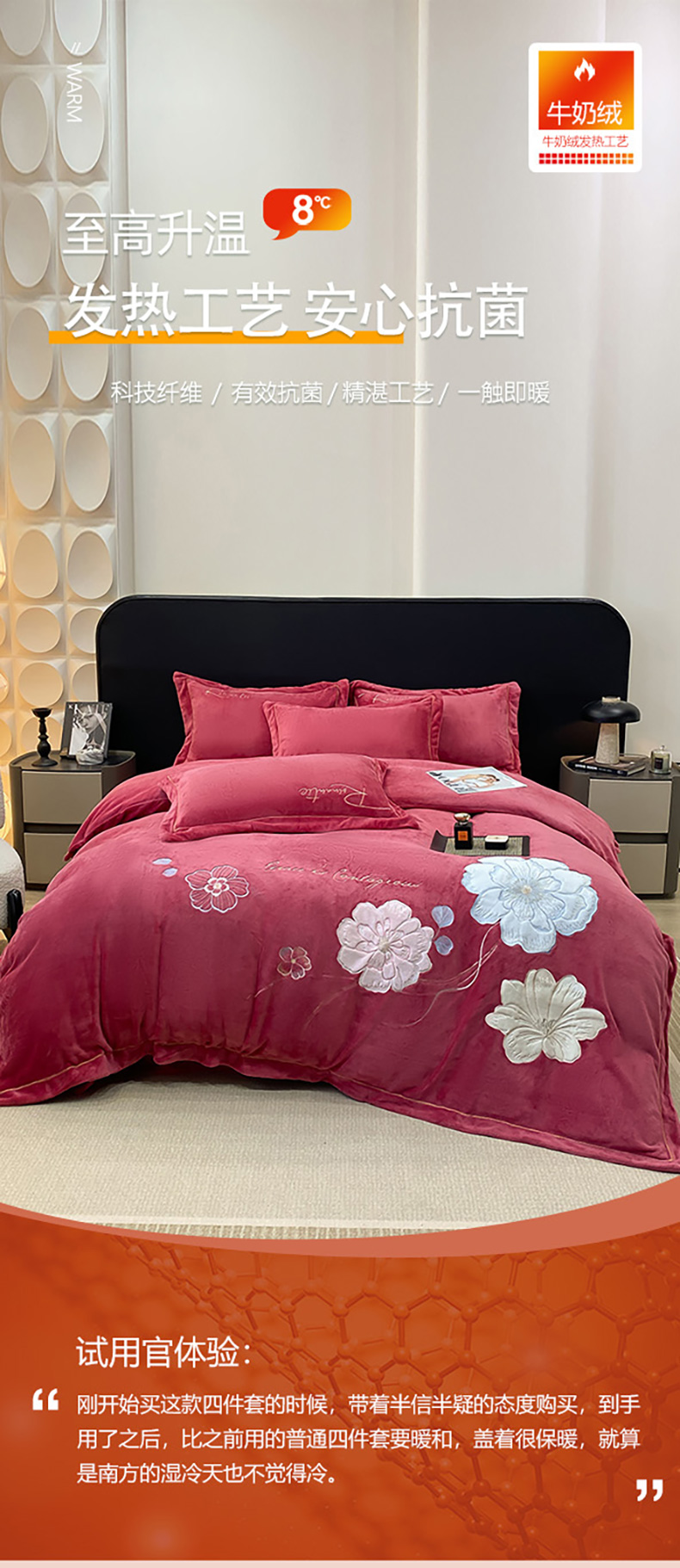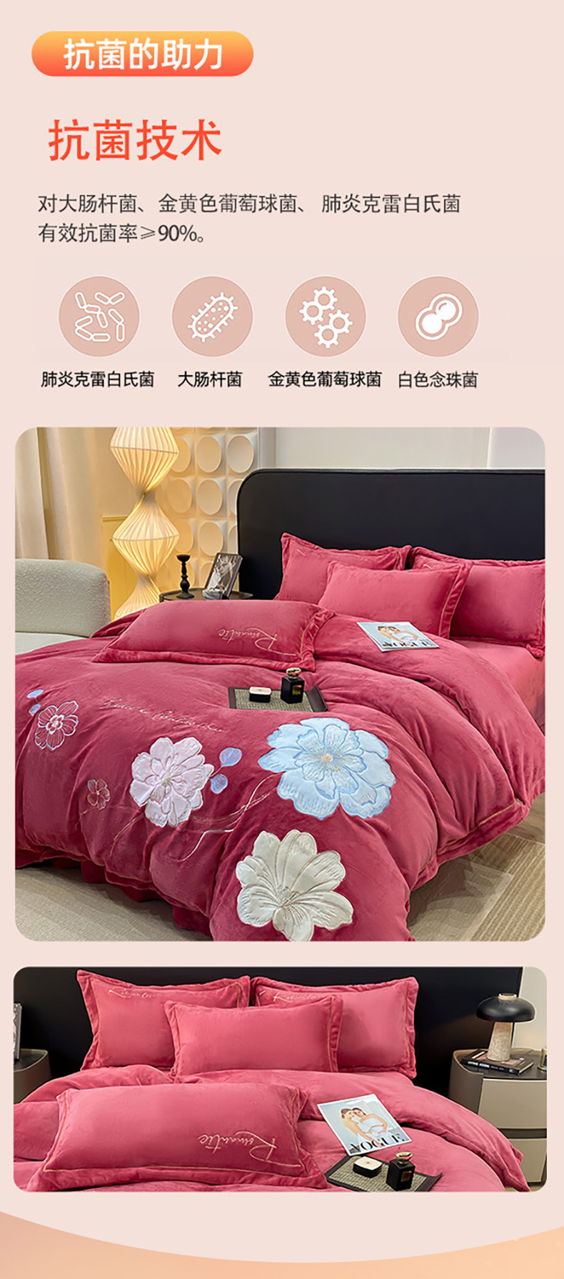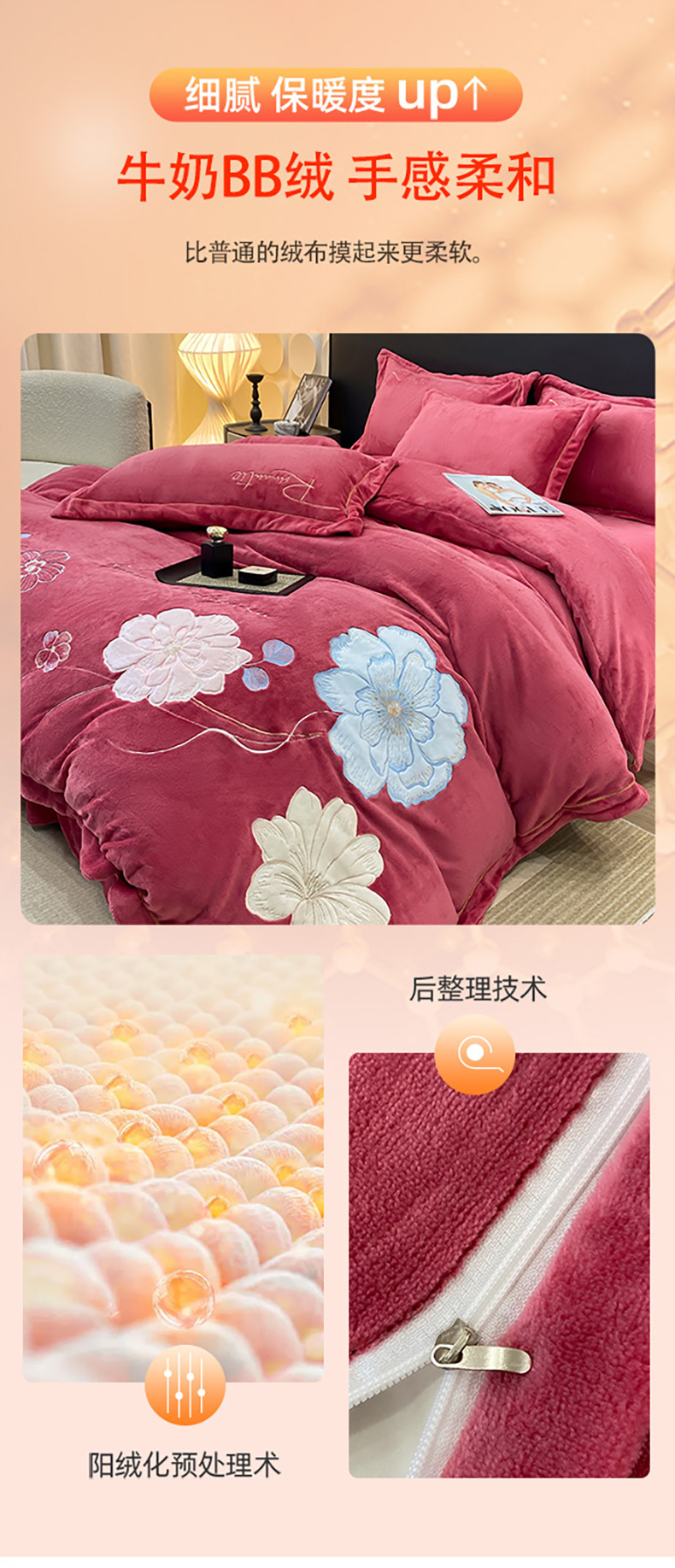商品名称:悦织湾家纺 2025新款9斤重牛奶绒四件套纯色贴布绣人件富贵系列240克重高密保暖轻奢时尚床上用品4件套 黛西-豆沙红