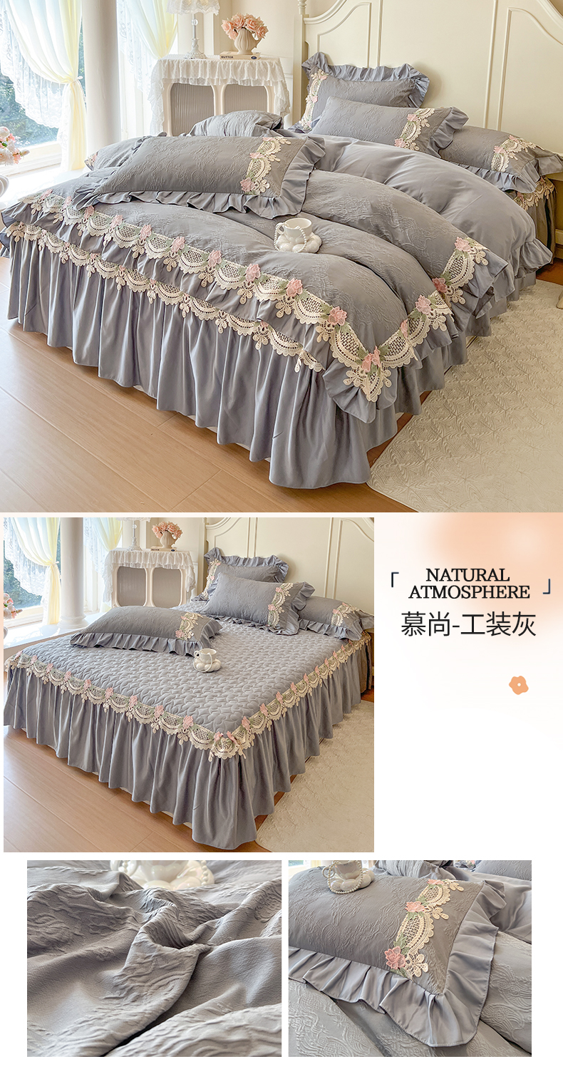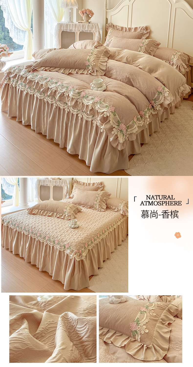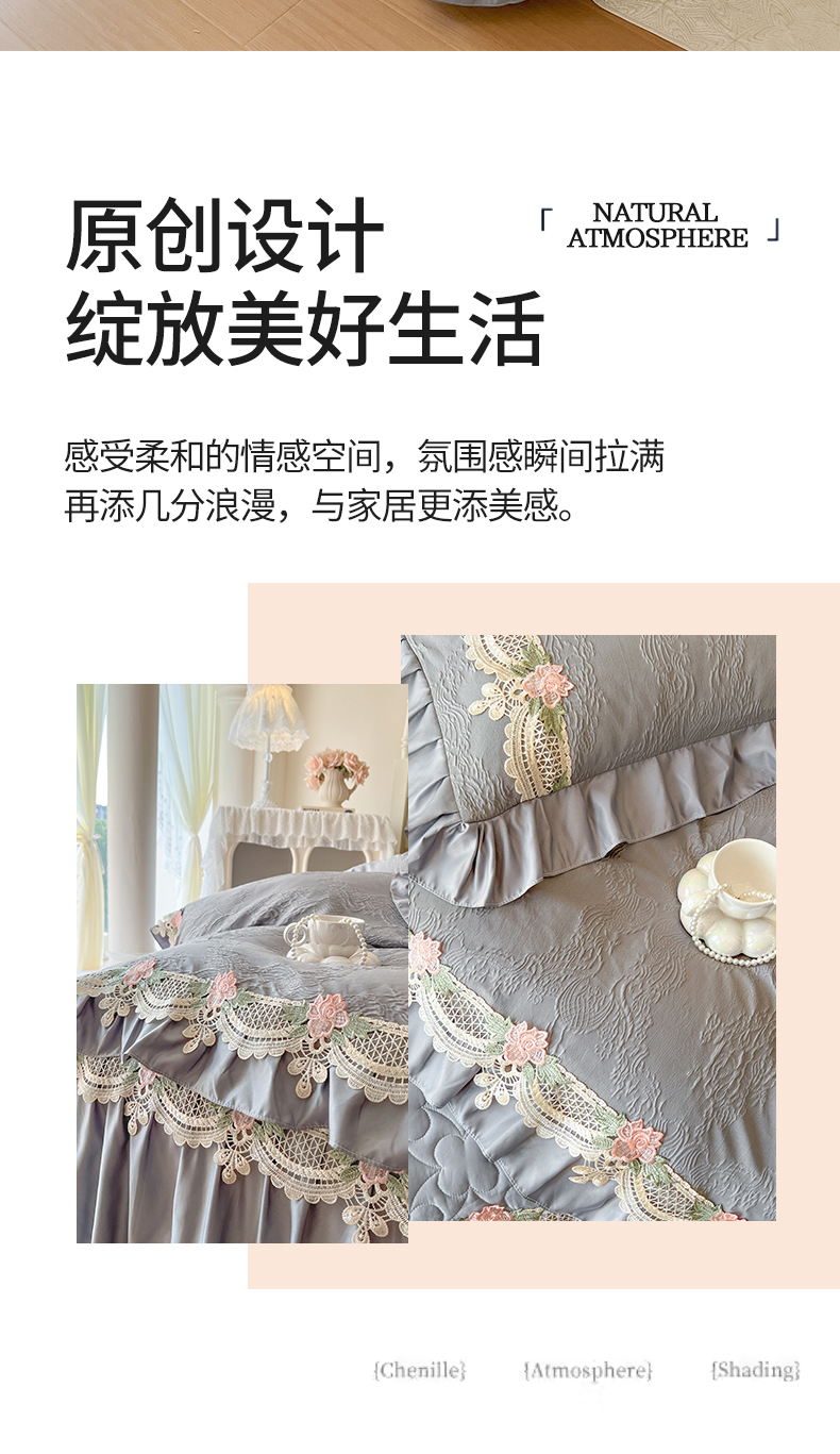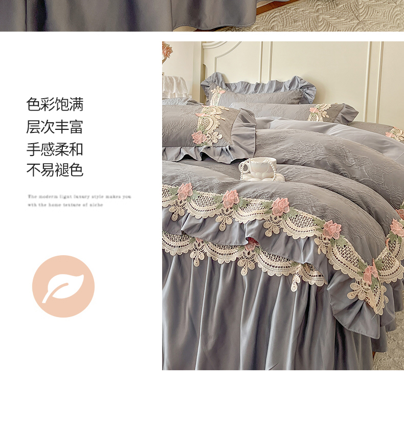 当前位置: 91家纺网 > 商品网购 > 床品套件 > 四件套 > 其它四件套 > (总)网红馆(ck家纺) 2025新款水洗真丝蕾丝刺绣床裙四件套-慕尚