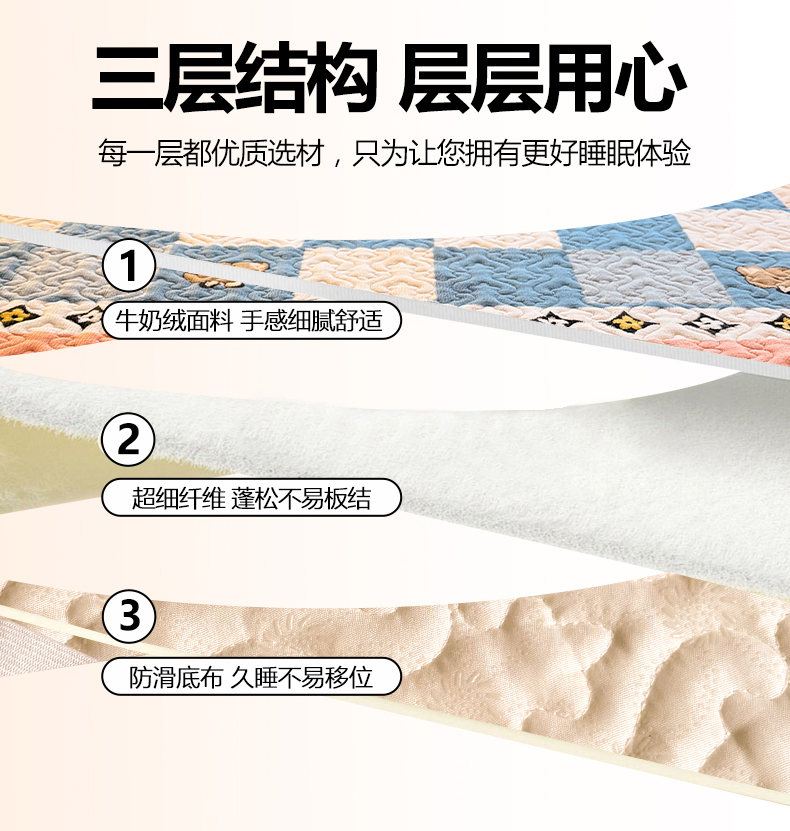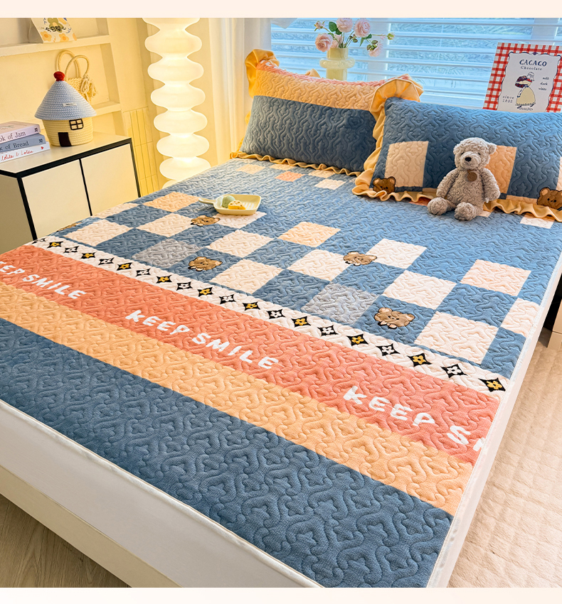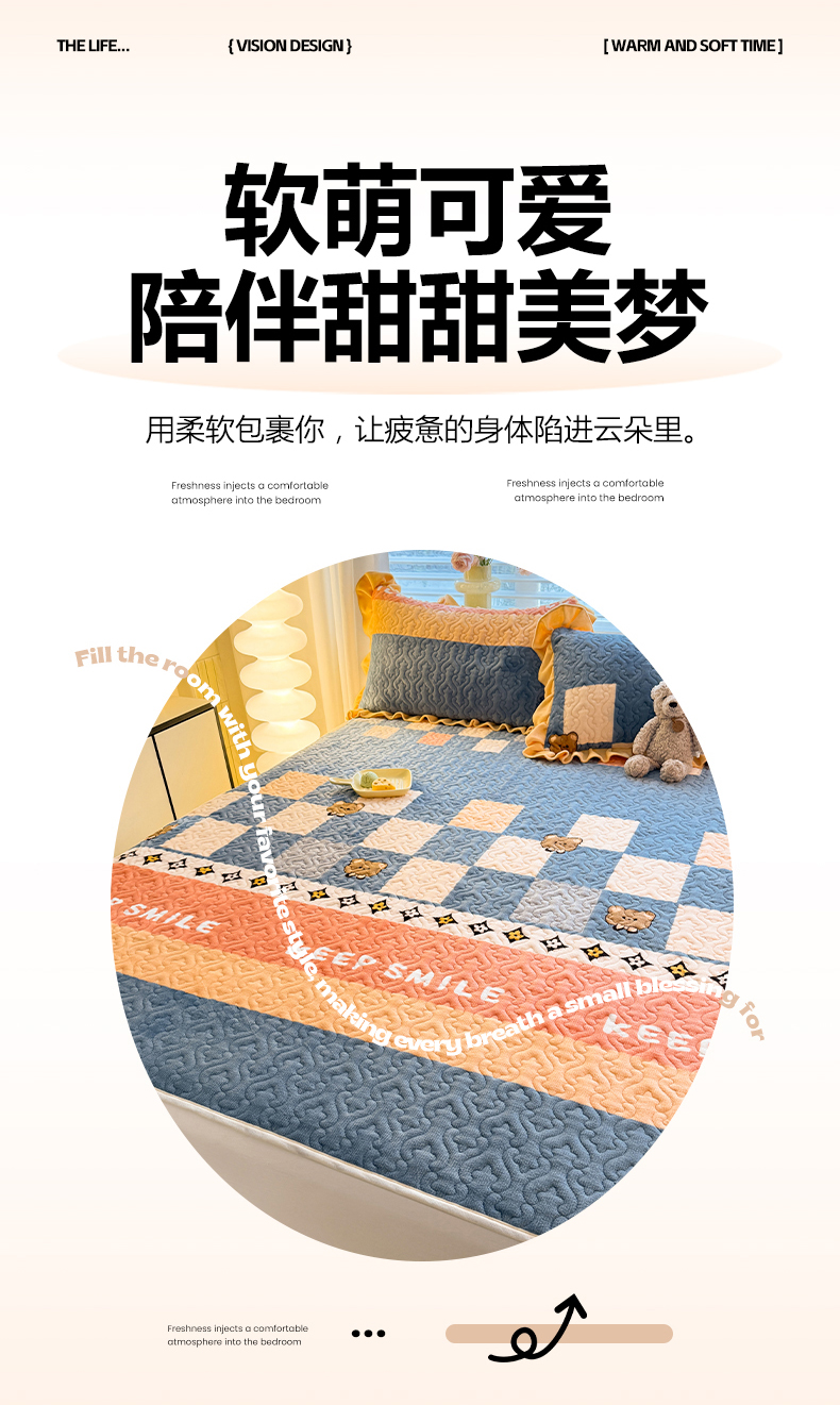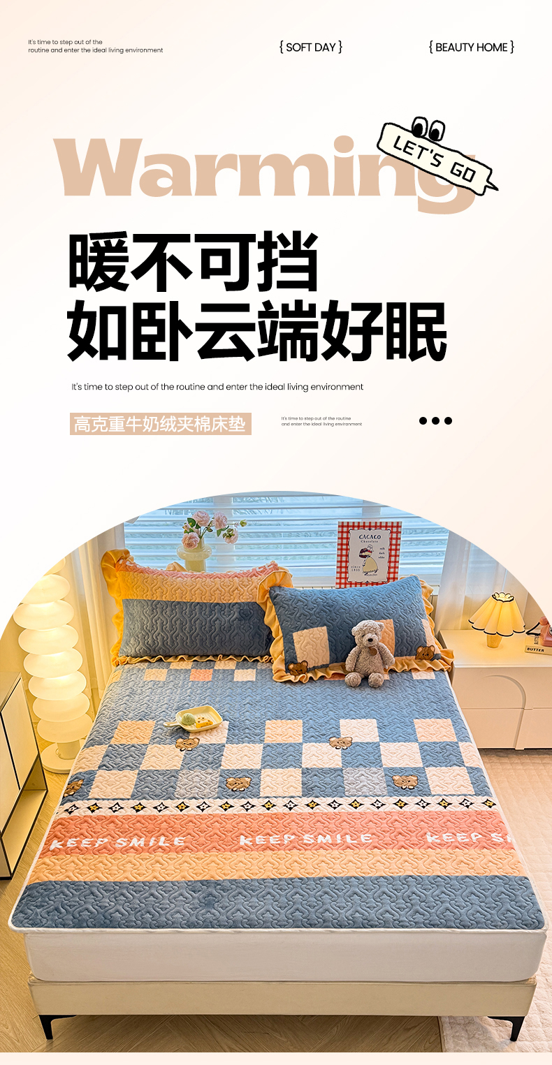 美达家纺 2025新款高克重牛奶绒夹棉床垫 微笑熊