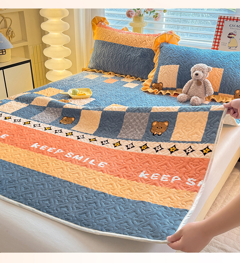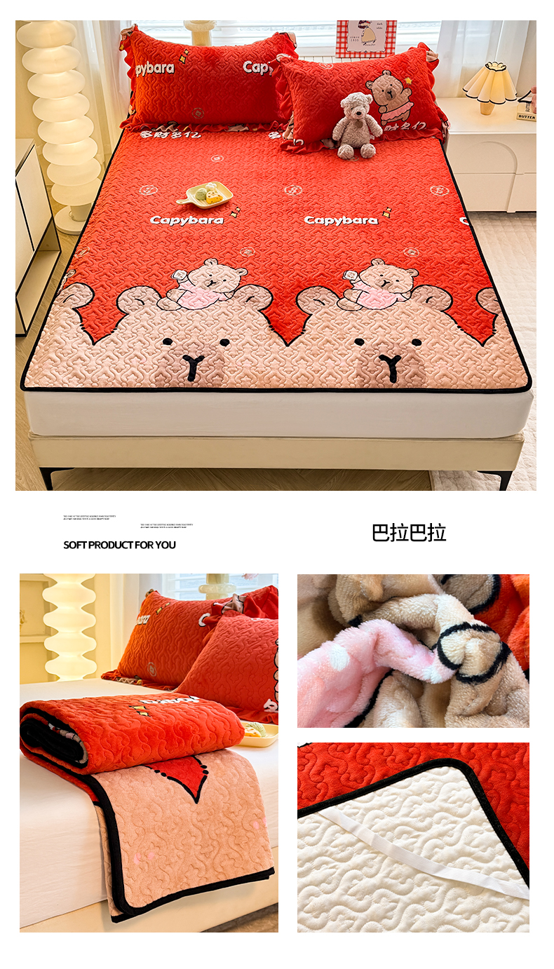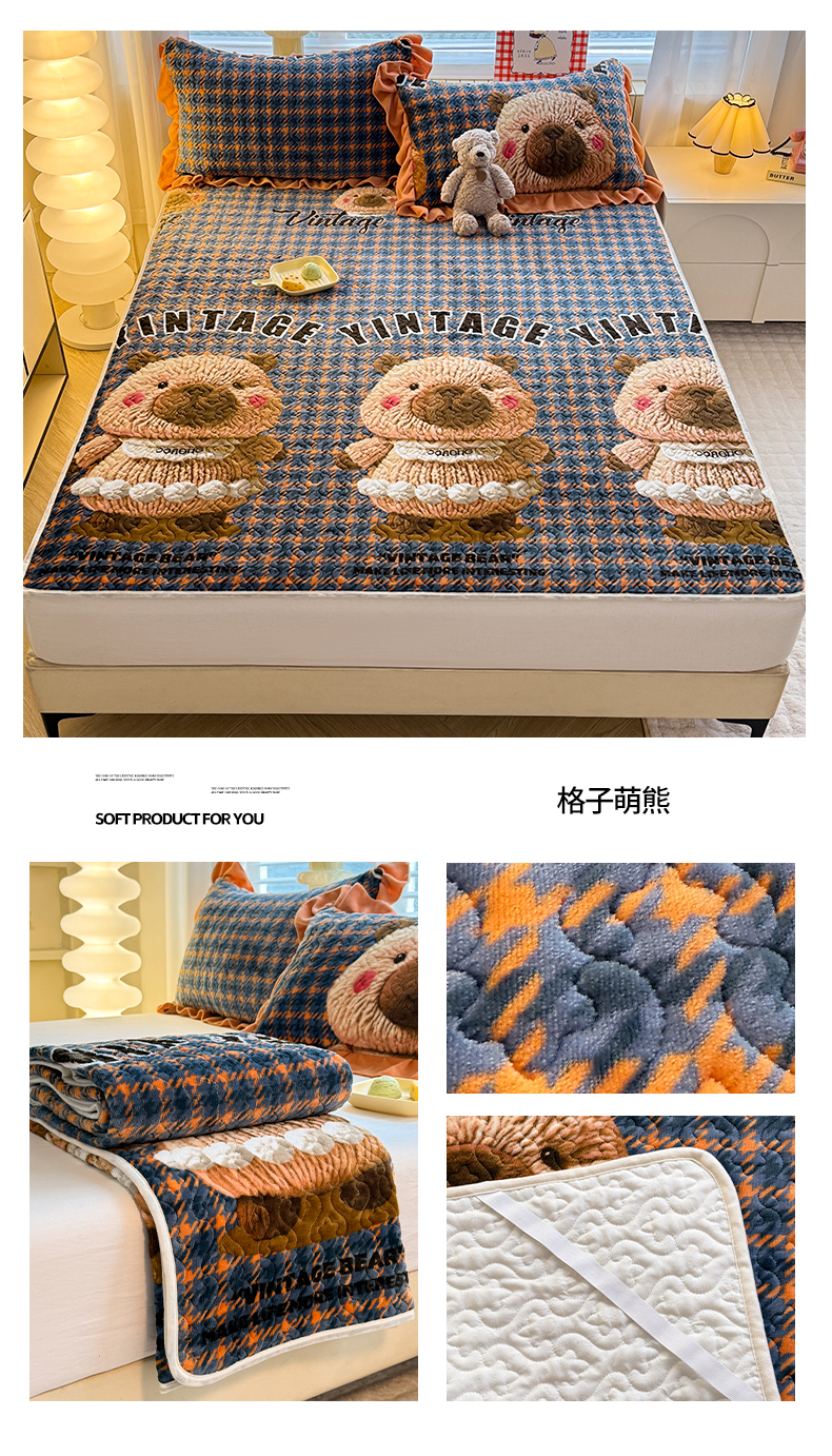 商品名称:美达家纺 2025新款高克重牛奶绒夹棉床垫 微笑熊
