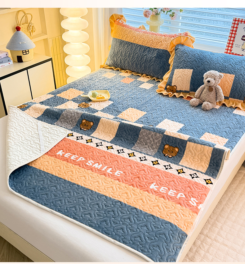 (总)美达家纺 2025新款A类全棉夹棉防水床垫儿童隔尿垫婴儿床防水防滑姨妈护理垫【可定制】,爱心小猫,卡其小熊,快乐小马,小飞象,小町的家