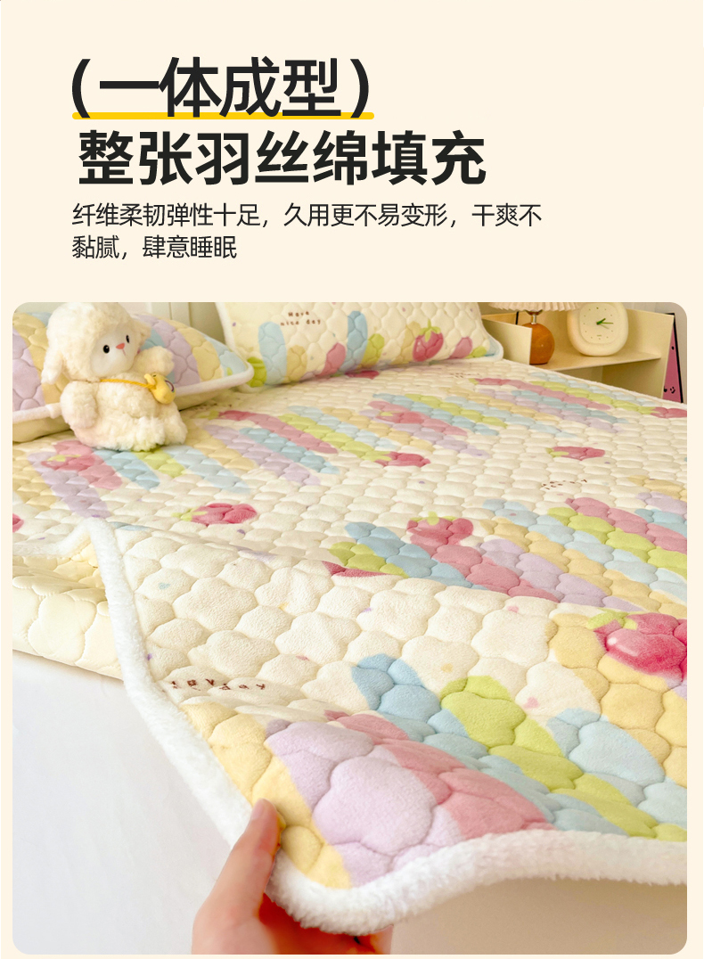 • 91家纺网 家纺一手货源 找家纺 富馨莱 2025新款牛奶绒夹棉床垫床盖支持一件定制 七彩草莓