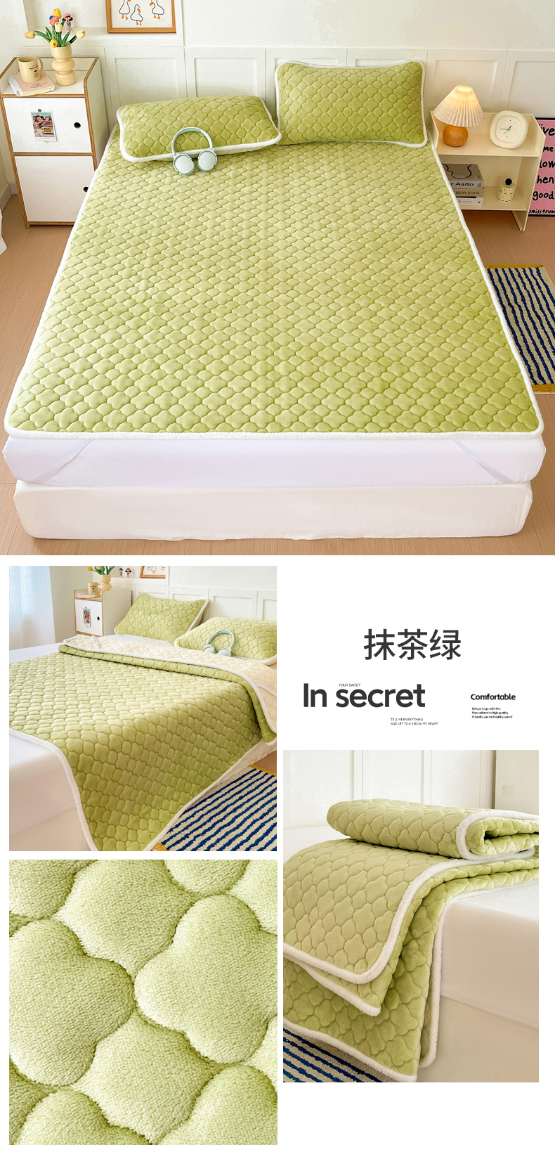 (总)富馨莱 2025新款牛奶绒夹棉床垫床盖支持一件定制,飞行太空,格子熊猫,孔雀蓝,恐龙伙伴,抹茶绿,七彩草莓,轻奢白,轻奢灰,小精灵,小柯基,樱桃兔,脏脏熊,组合图