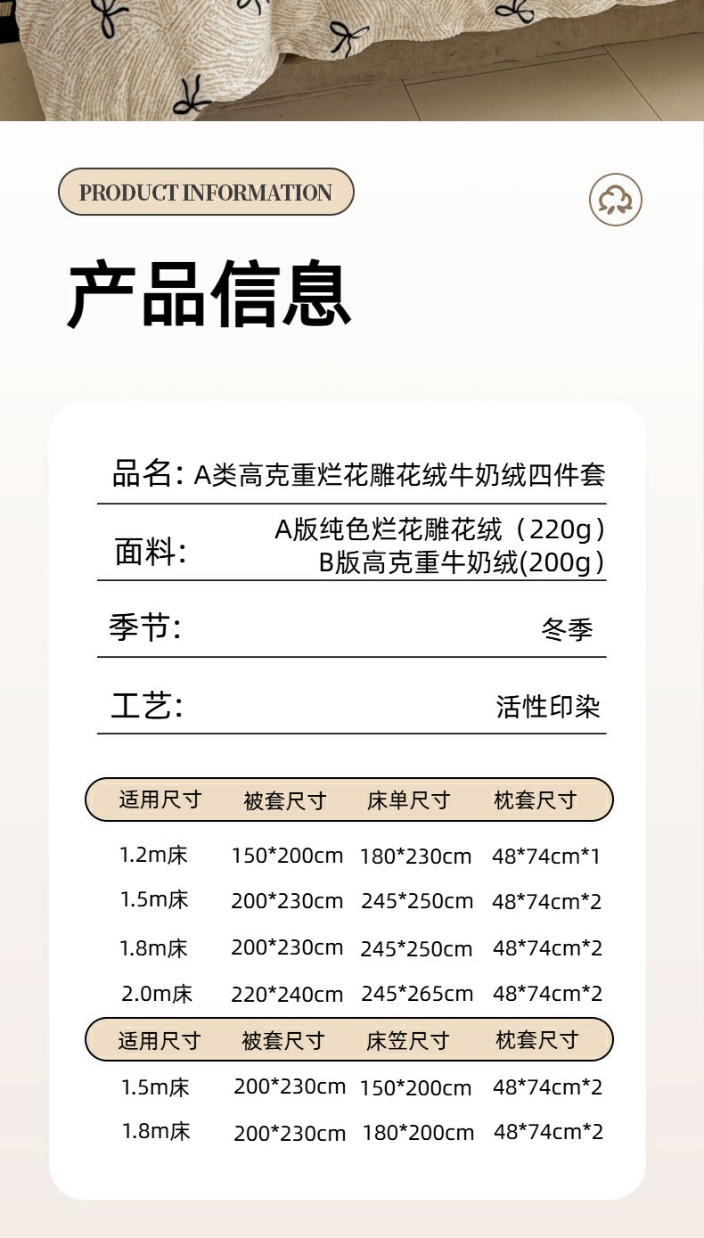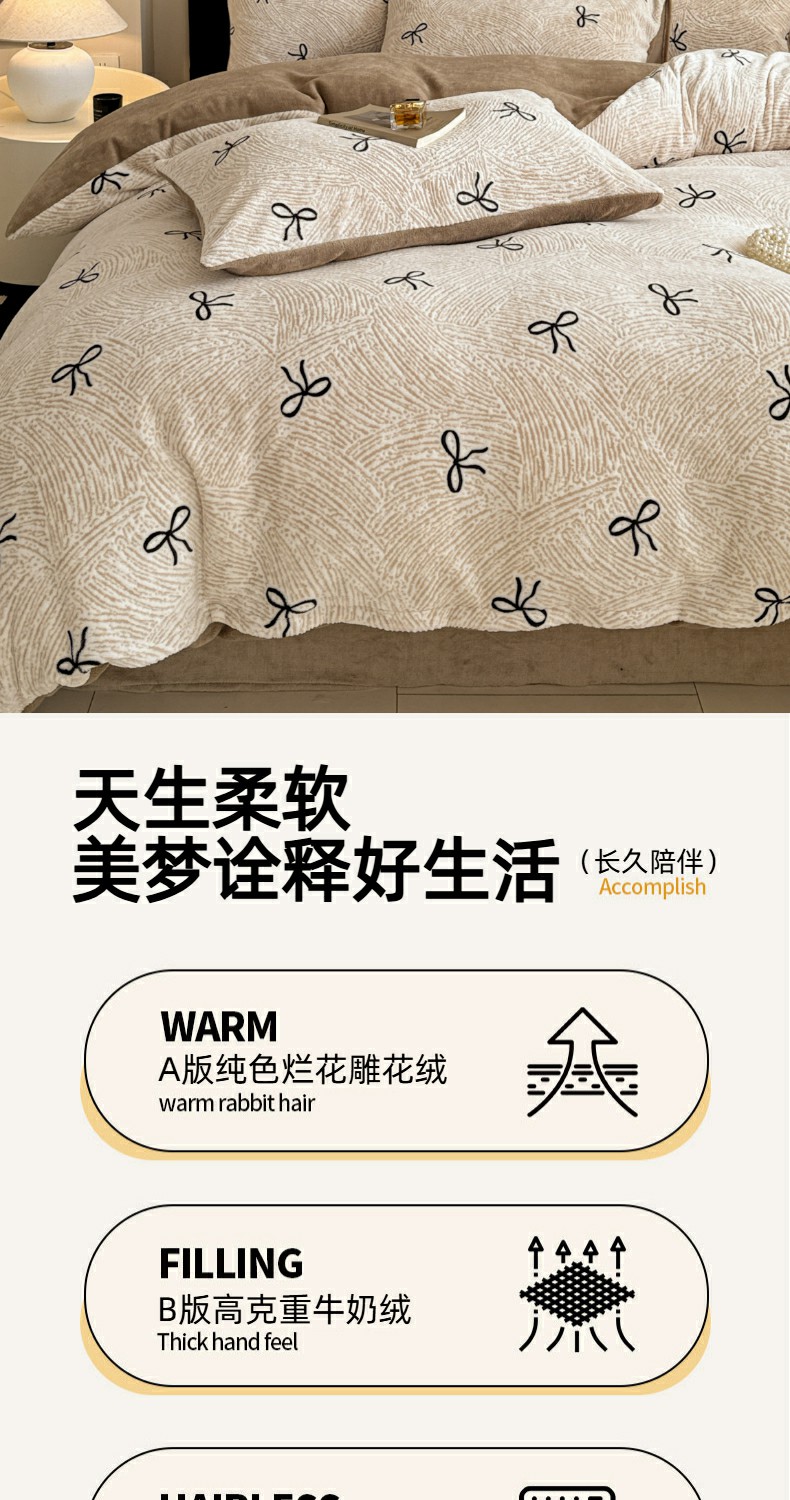 商品名称:呗旺鹿 2025新款A类高克重着色烂花雕花牛奶绒四件套 桃你欢喜粉