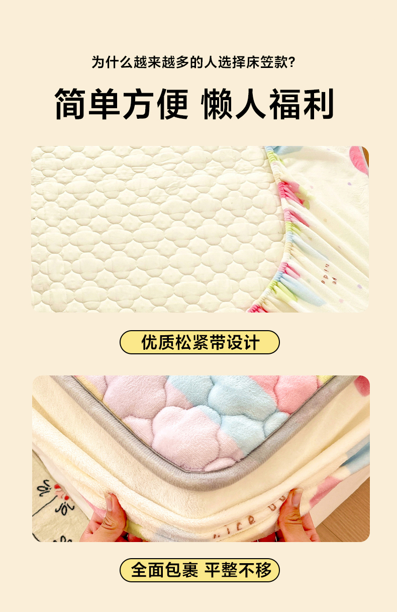 (总)富馨莱 2025新款牛奶绒夹棉床垫床盖支持一件定制,飞行太空,格子熊猫,孔雀蓝,恐龙伙伴,抹茶绿,七彩草莓,轻奢白,轻奢灰,小精灵,小柯基,樱桃兔,脏脏熊,组合图