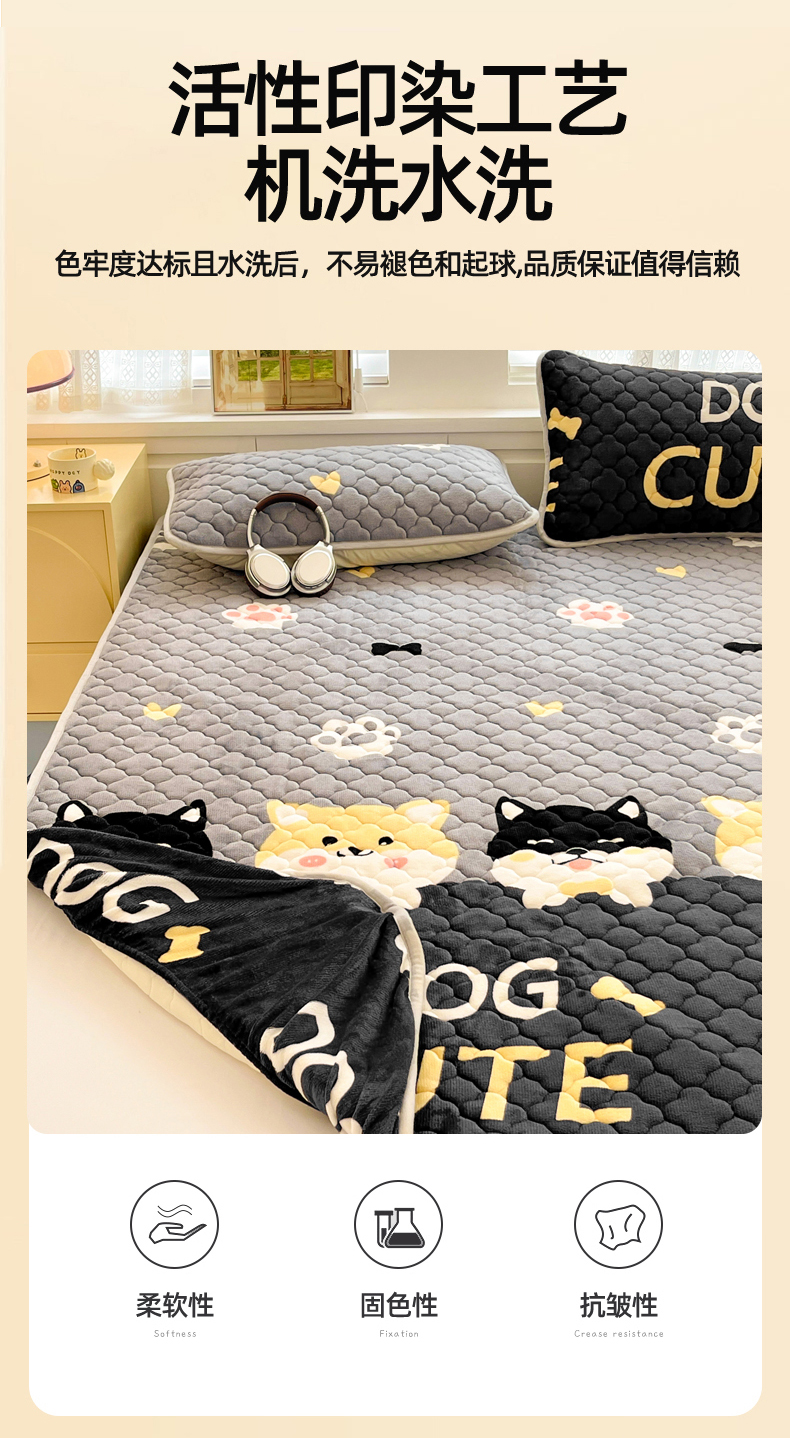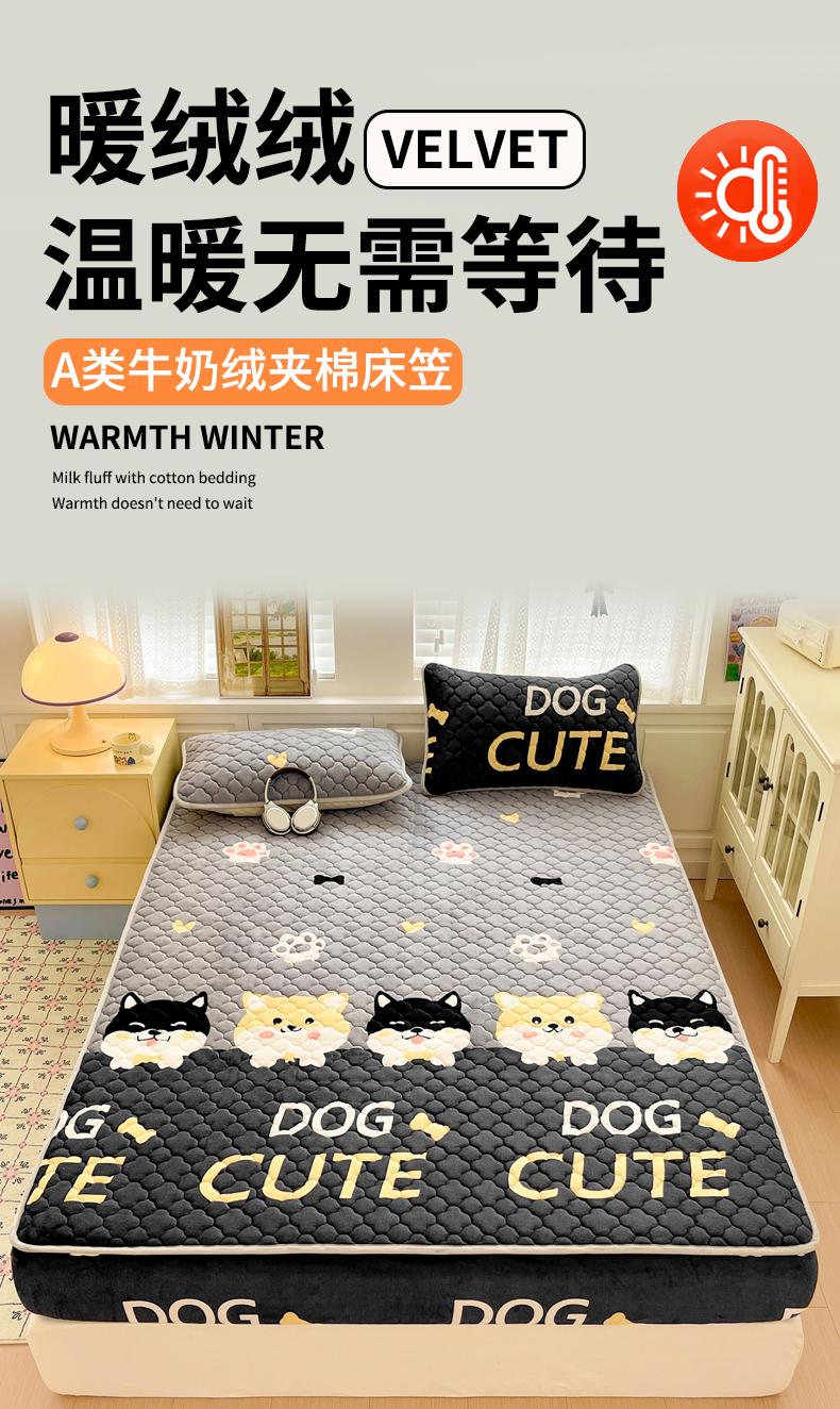 • 91家纺网 家纺一手货源 找家纺 富馨莱 2025新款牛奶绒夹棉床笠支持一件定做 小柯基-夹棉