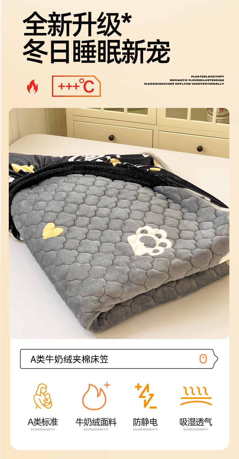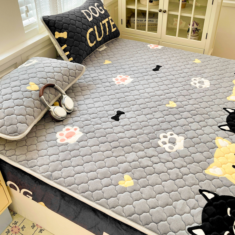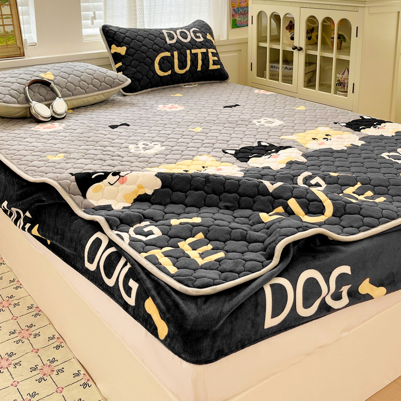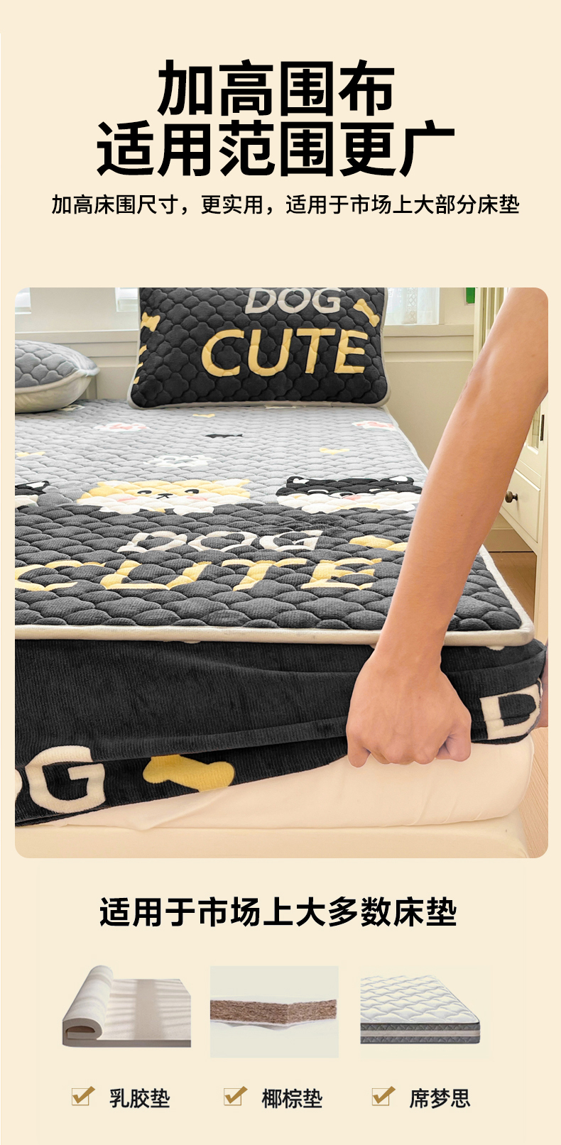 富馨莱 2025新款牛奶绒夹棉床笠支持一件定做 小柯基-夹棉