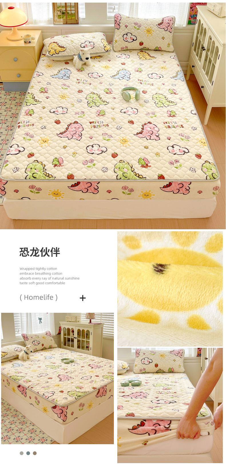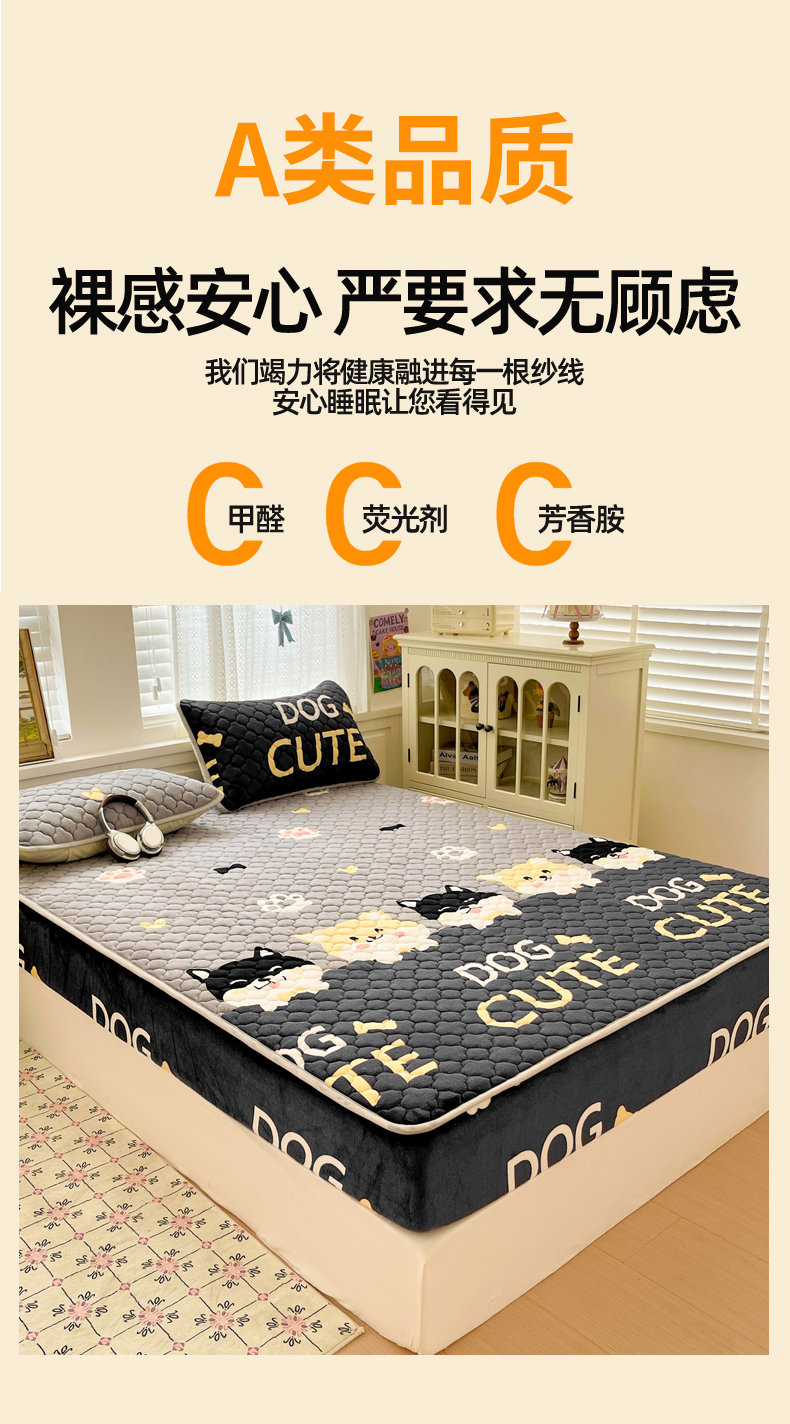 (总)富馨莱 2025新款牛奶绒夹棉床垫床盖支持一件定制,飞行太空,格子熊猫,孔雀蓝,恐龙伙伴,抹茶绿,七彩草莓,轻奢白,轻奢灰,小精灵,小柯基,樱桃兔,脏脏熊,组合图