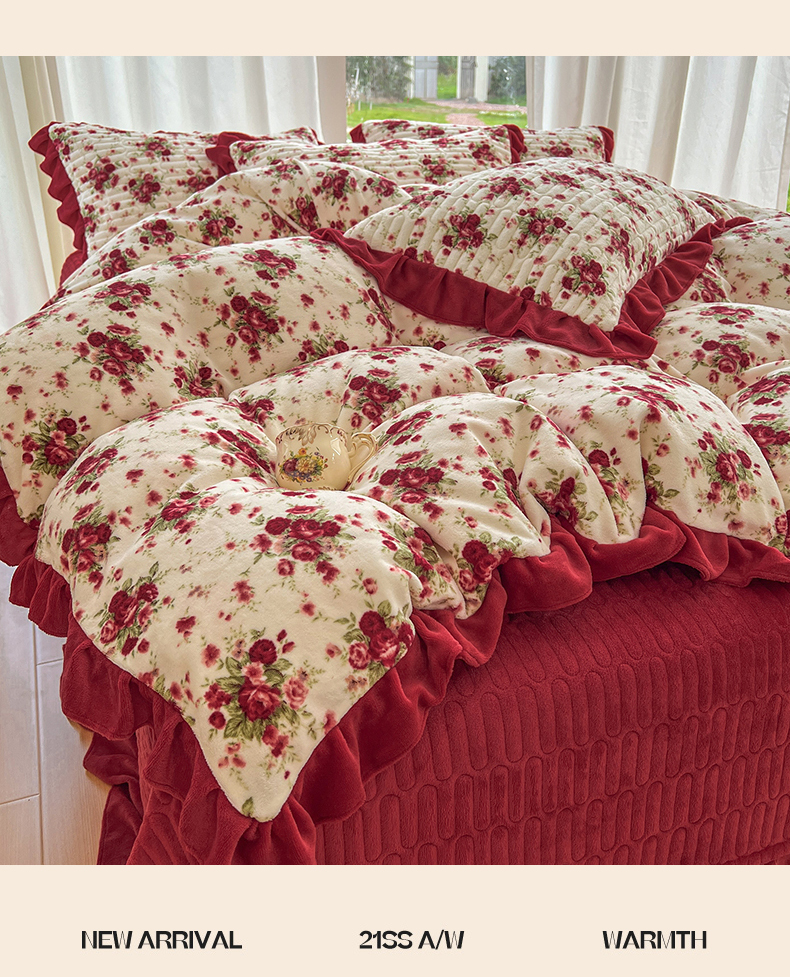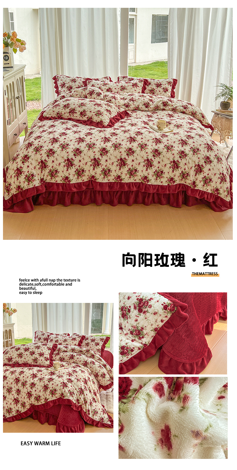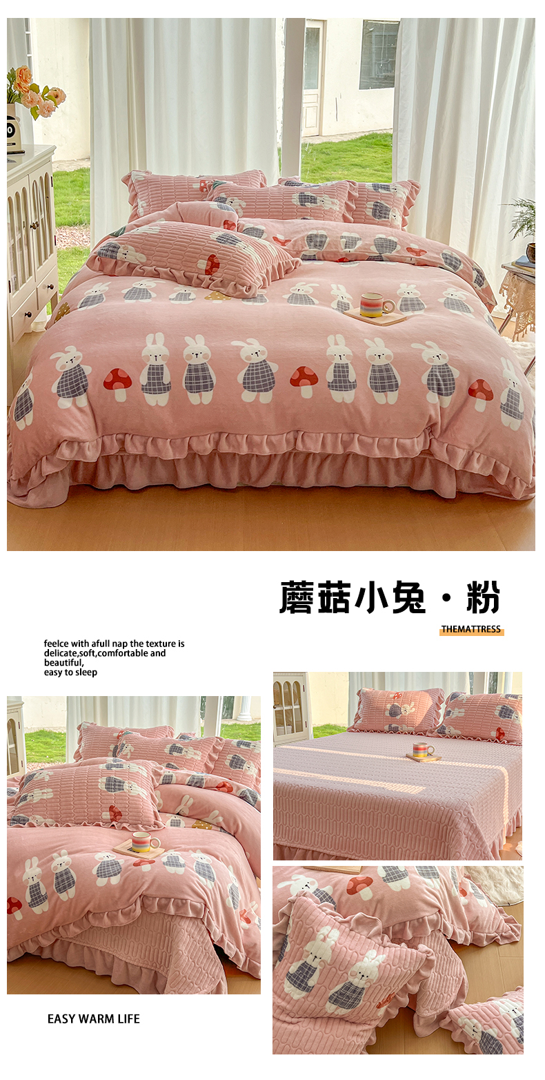 (总)美梦家纺 2025新款花边牛奶绒床盖四件套,向阳玫瑰-红,彩虹条-紫,粉蝴蝶结,横条蝴蝶结-灰,灰蓝格-红心,凯蒂猫-蓝,可爱猫咪-红,玫瑰的故事,梦回花田粉,蘑菇小兔-粉