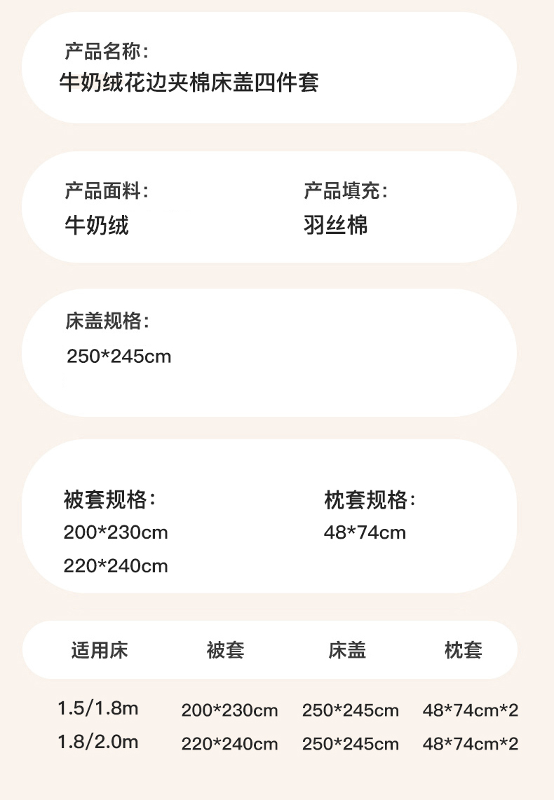 2.0m床盖款四件套(床盖250x245被套220x240)