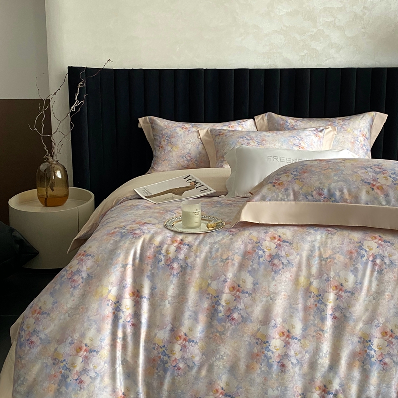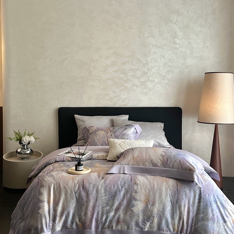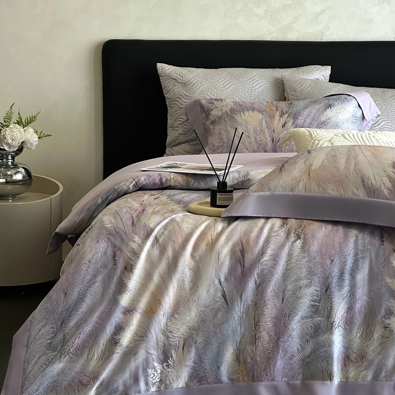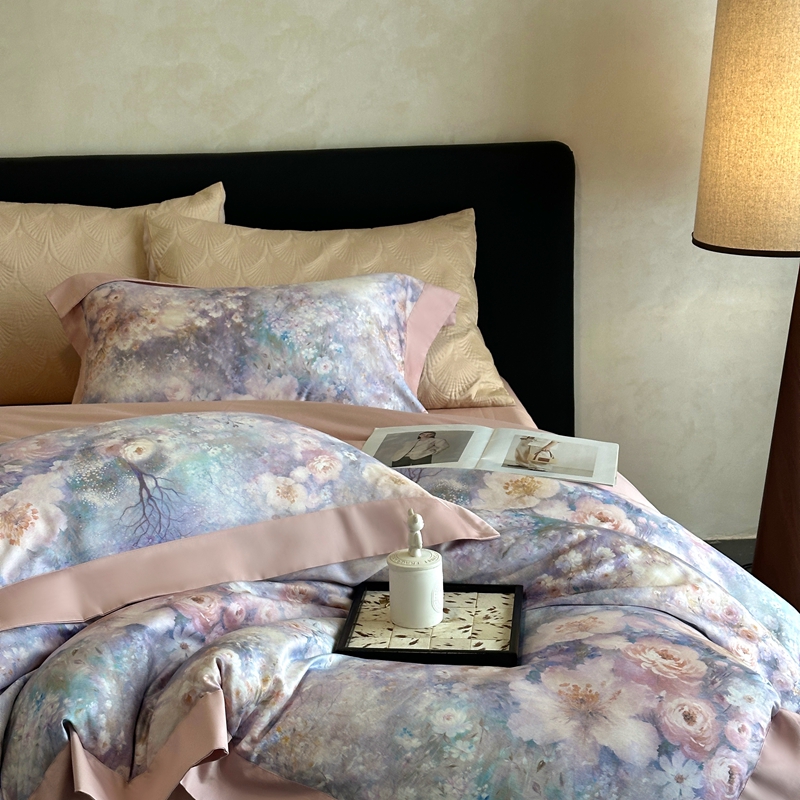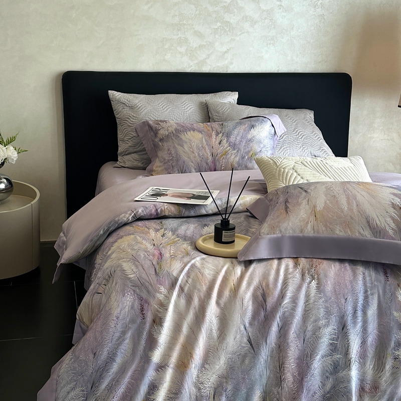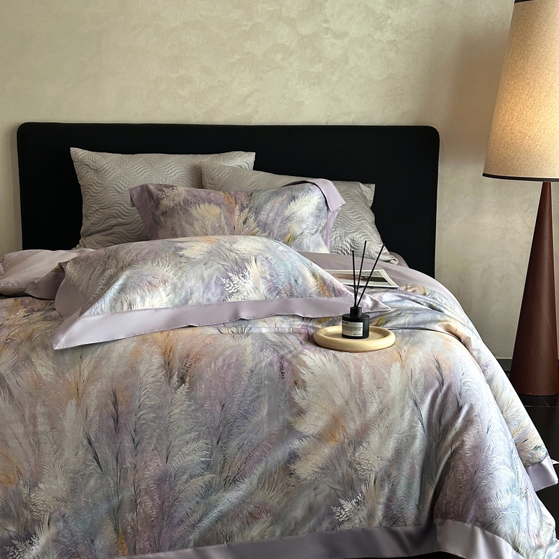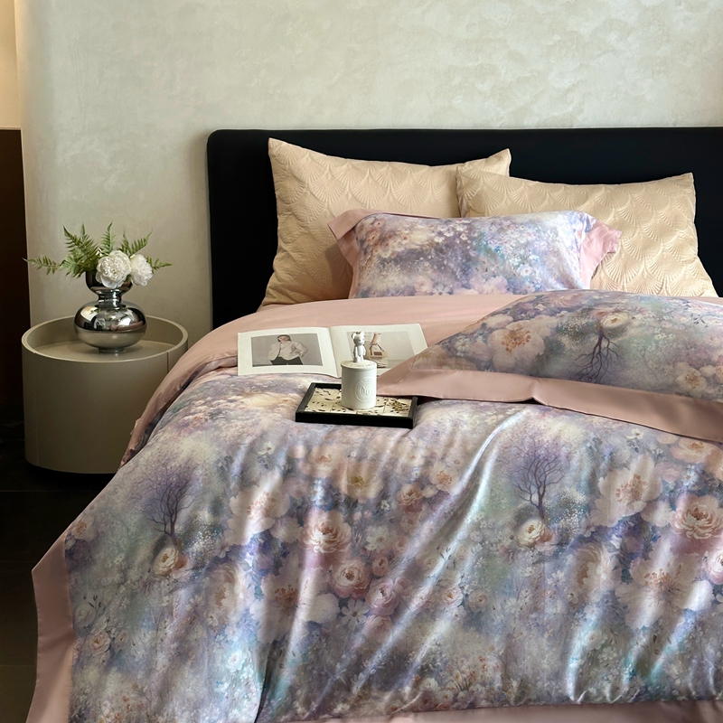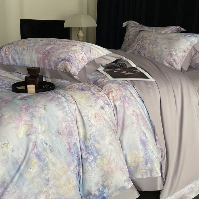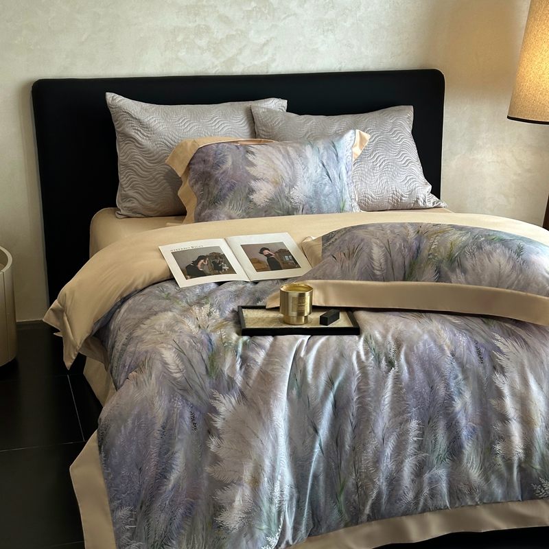 (总)南泉坊 2025新款60支全棉纯棉数码印花磨毛四件套,布拉格-米色,布拉格-紫