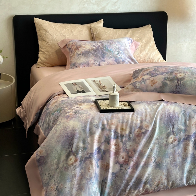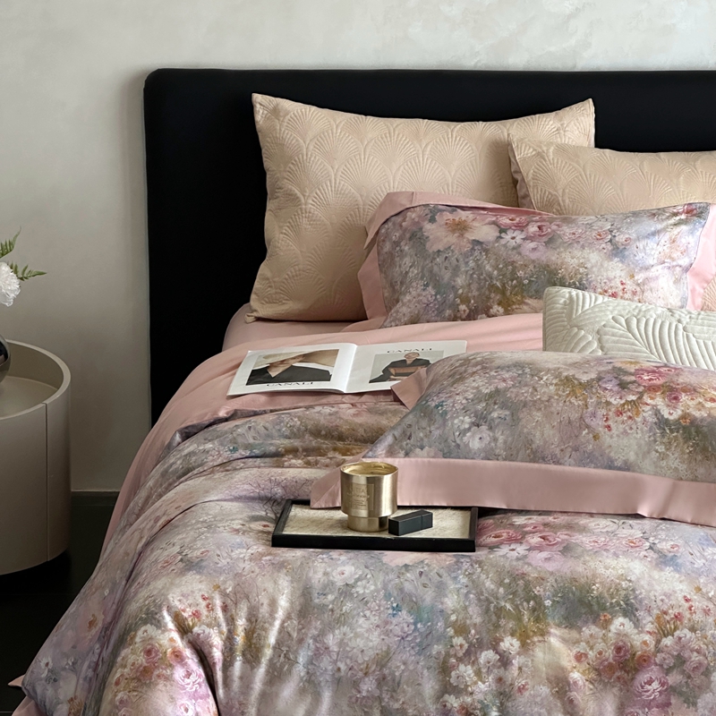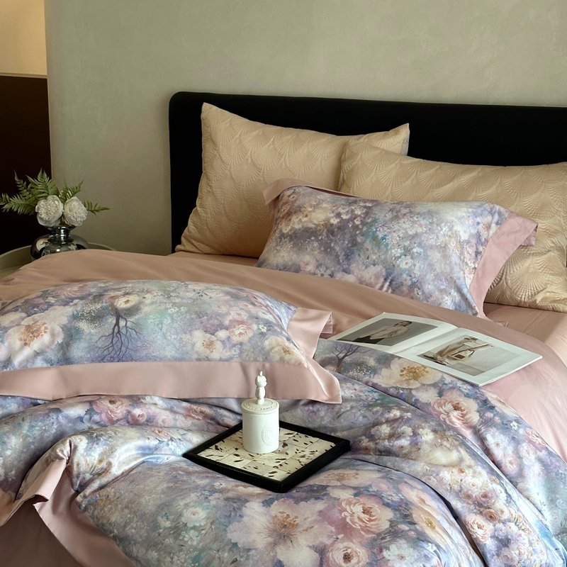 (总)南泉坊 2025新款60支全棉纯棉数码印花磨毛四件套,知薇-曲奇色,知薇-粉,知薇-灰咖,知薇-嫩芽色