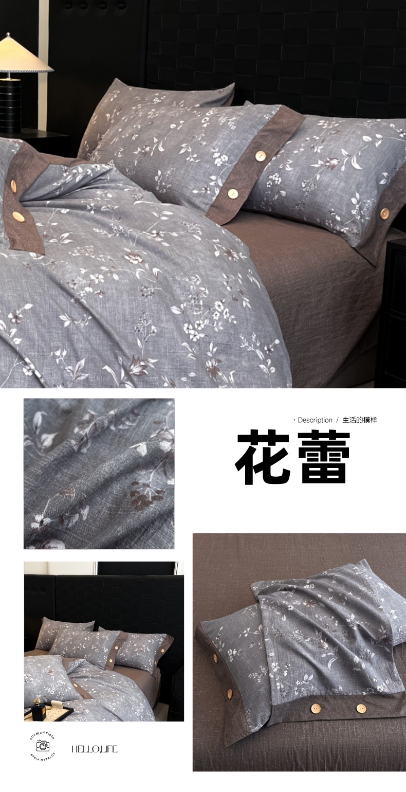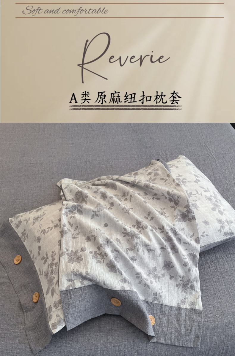 商品名称:梦舒羽 2025新款原麻纽扣枕套宿舍单只枕芯套枕头套一对装枕芯内胆套 花之舞